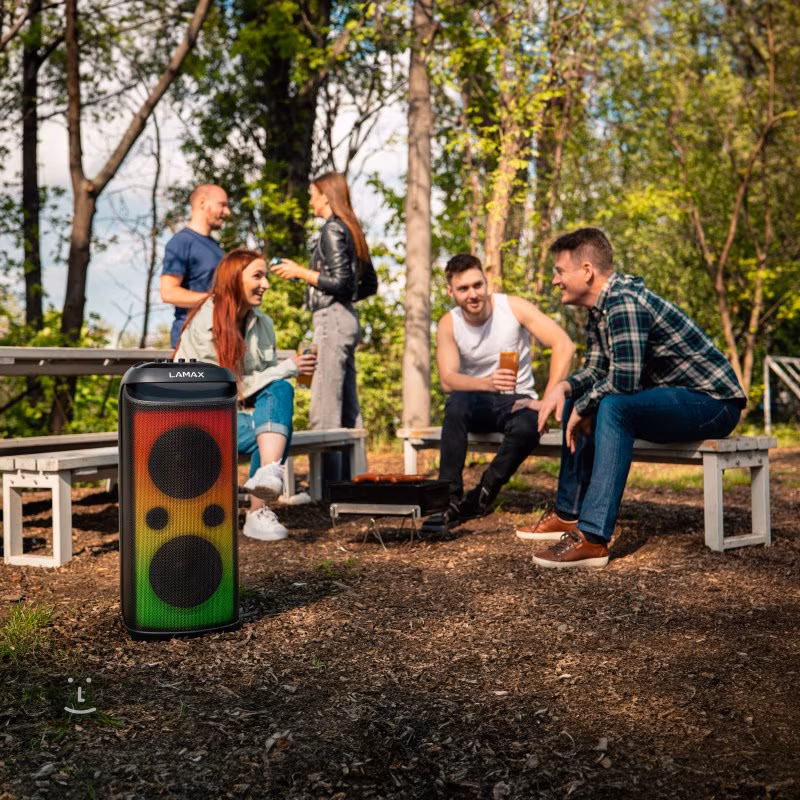 LAMAX PartyKing1 Max je moderní přenosný reproduktor s obřím výkonem 200 W, který se bezpochyby stane králem jakékoliv akce. Neudělá ostudu ani na velké svatbě, vaše bazénové párty se stanou legendární a KingMax je v klidu přežije díky IPX4 ochraně. Jo, a můžeš přes něj zpívat a hrát na kytaru. Díky dvoupásmové konstrukci, EQ a pokročilé technologii BeatBass® si užijete hluboké basy, které ve vás bezesporu rozproudí správný rytmus.