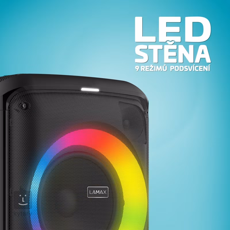 Pokud na párty vázne zábava, nebo zrovna chystáš svatební proslov, PartyKing1 Play je vybaven bezdrátovým mikrofonem, ideálním pro karaoke nebo moderování, případně snadno připojíš jiný dynamický mikrofon. Devět nastavitelných LED světelných efektů přidá každé akci tu správnou atmosféru.