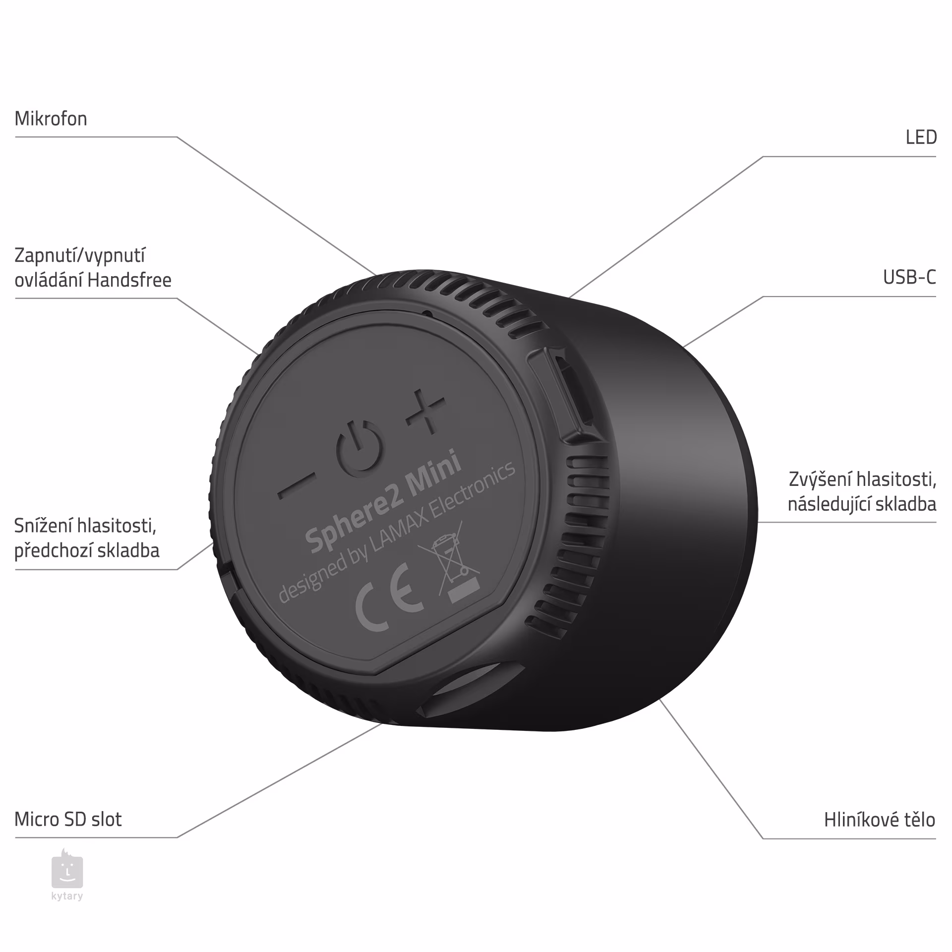 LAMAX Sphere2 Mini je kompaktní bezdrátový Bluetooth reproduktor o výkonu 5 W.