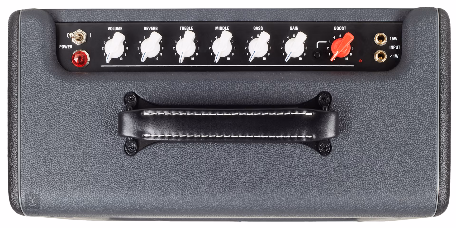Kytarové kombo Cub-Super12 nabízí dva nástrojové vstupy - jeden s plným výkonem 15 wattů, druhý s výkonem 1 watt, který jistě oceníte při domácím hraní. Přehledný hlavní panel s ovladači hlasitosti, gainu, třípásmovým ekvalizérem a ovladačem Boost, známými z modelu Super10, rozšiřuje zabudovaný reverb vystavěný na algoritmu pružinového reverbu z pedálu LANEY BCC Secretpath. Funkci Boost aktivujete pomocí tlačítka na ovládacím panelu nebo footswitchem (FS2-Mini není součástí balení).