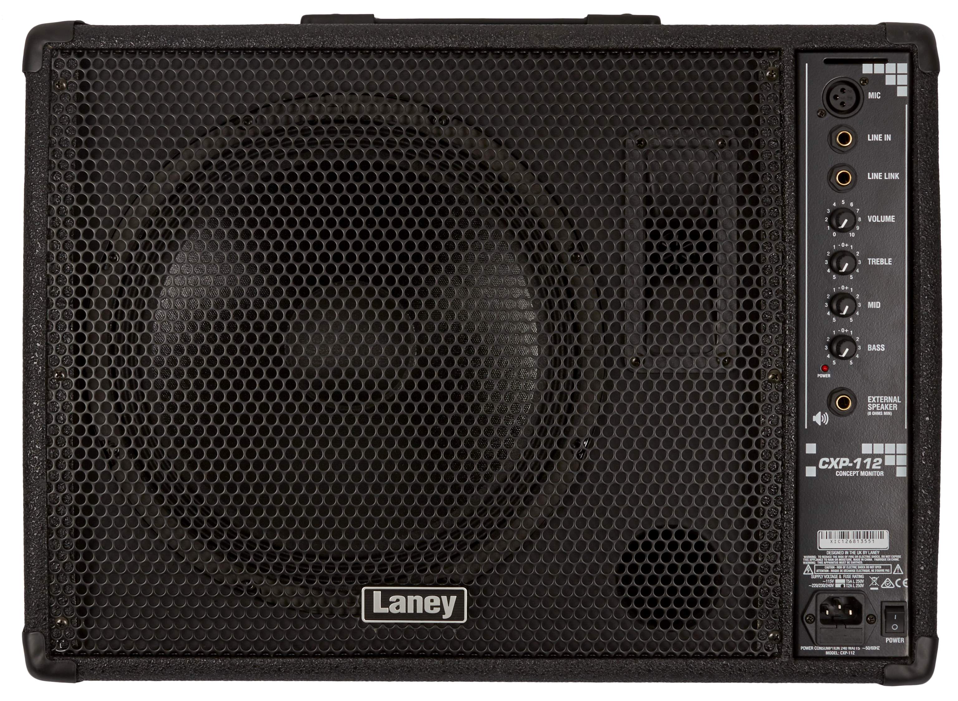 Konkrétně CXP112 je monitor, který je schopný dosáhnout výkonu až 120W RMS, jeho impedance odpovídá 4 Ohmům. Osazen je 12 palcovým reproduktorem a 1 palcovou hornou. Pro propojení se zdrojem signálu slouží dva konektory označené jako Mic (XLR) a Line-In (6,3 mm Jack), stejné typy zdířek slouží i jako Line-Link výstup a výstup pro externí reprobox, použít lze například pasivního „brášku“ z řady Laney CXM či jiný reprobox o zátěži 8 Ohm. K ovládání slouží potenciometry Bass, Mid, Treble a Volume.