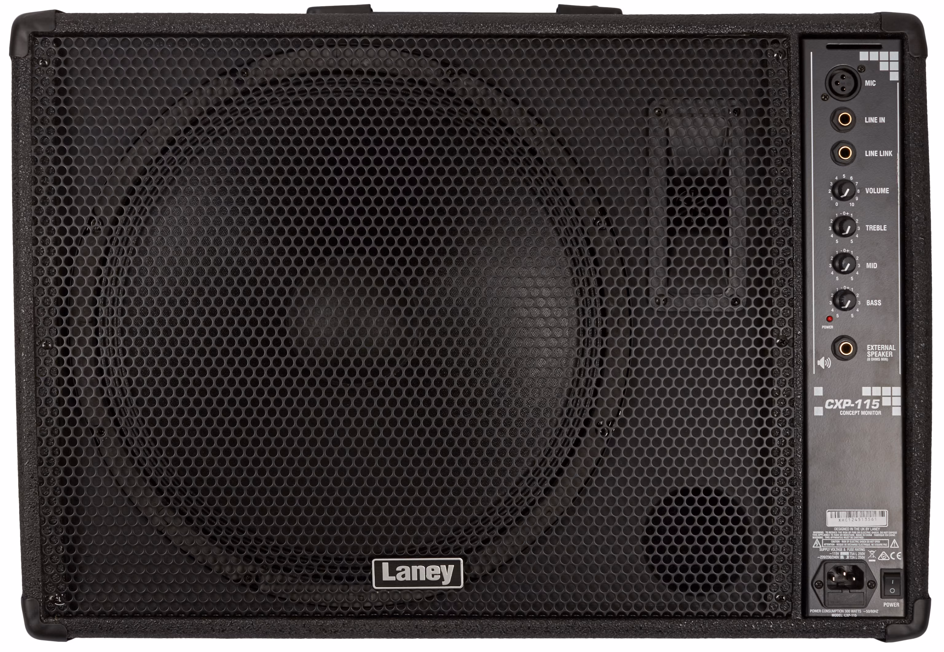 Konkrétně CXP115 je monitor, který je schopný dosáhnout výkonu až 150W RMS, jeho impedance odpovídá 4 Ohmům. Osazen je 15 palcovým reproduktorem a 1 palcovou hornou. Pro propojení se zdrojem signálu slouží dva konektory označené jako Mic (XLR) a Line-In (6,3 mm Jack), stejné typy zdířek slouží i jako Line-Link výstup a výstup pro externí reprobox, použít lze například pasivního „brášku“ z řady Laney CXM či jiný reprobox o zátěži 8 Ohm. K ovládání slouží potenciometry Bass, Mid, Treble a Volume.