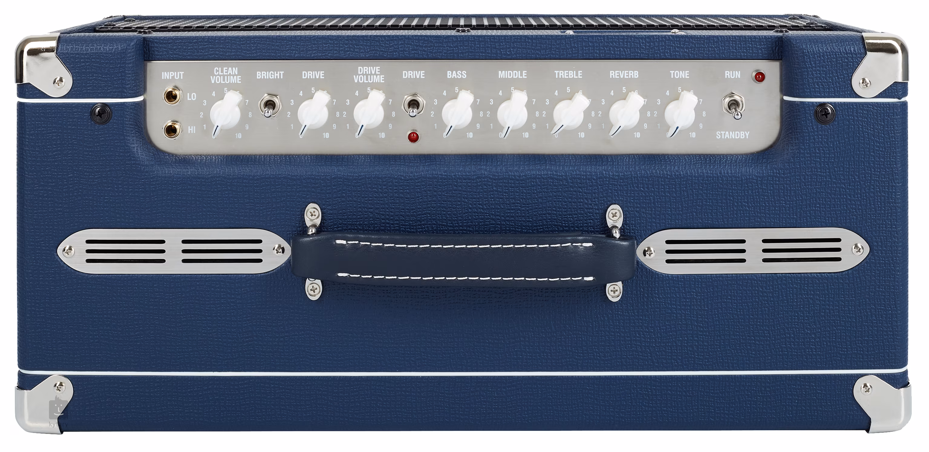 Na jeho ovládacím panelu naleznete přehledně uspořádané potenciometry, kterým ještě předchází Lo a Hi vstupy. Prvním ovladačem je potenciometr hlasitosti prvního kanálu, následuje spínač Bright a ovladače Drive a Drive Volume týkající se druhého kanálu – ten se spíná hned vedle umístěným přepínačem Drive. Oběma kanálům je společný 3pásmový ekvalizér a potenciometry Tone a Reverb nastavující úroveň zabudovaného digitálního reverbu.