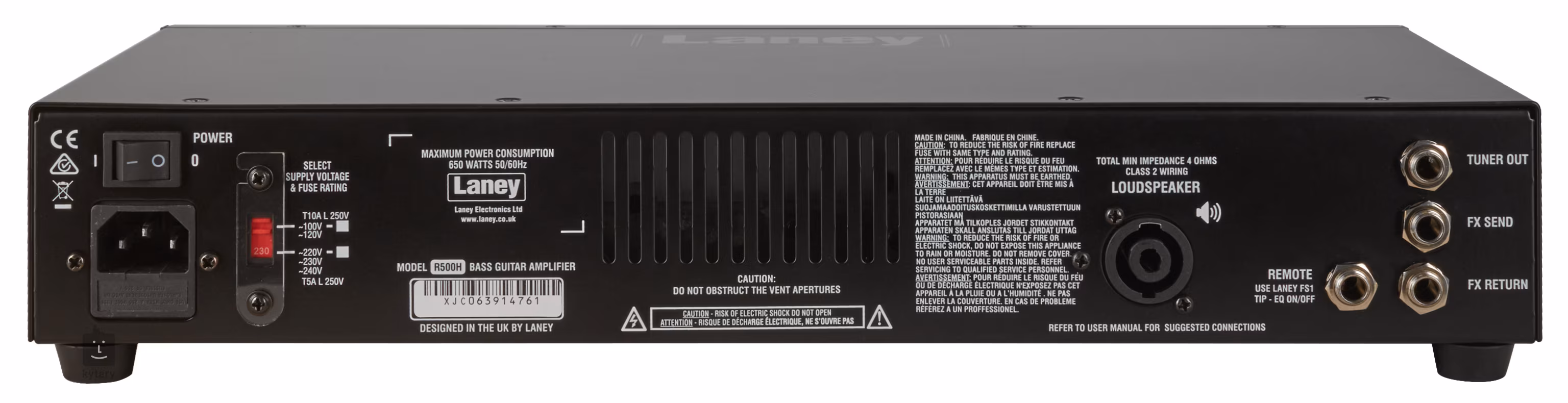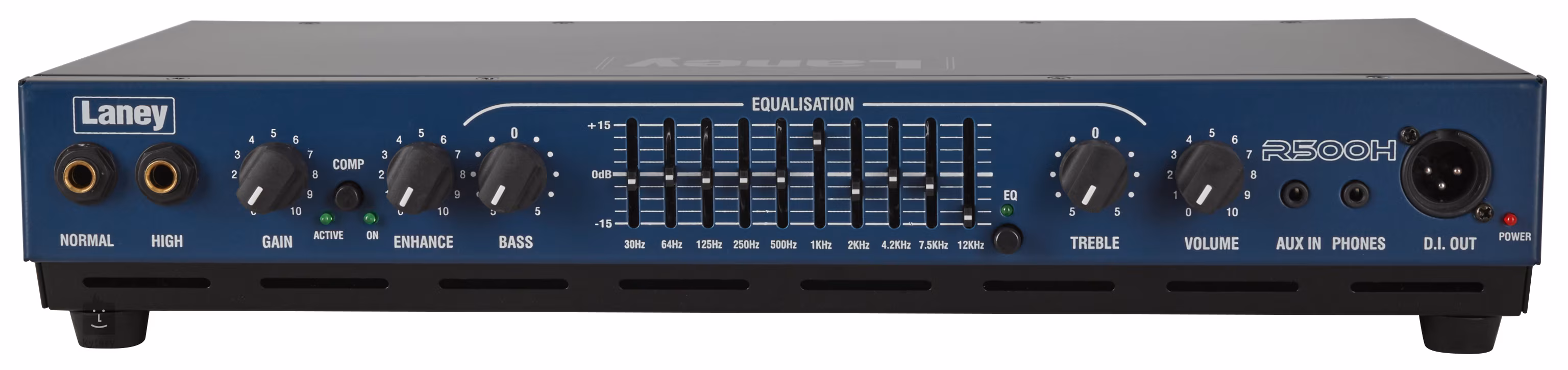 Cenově dostupný tranzistorový zesilovač R500H je při svém výkonu 500 W neuvěřitelně lehký (4,1 kg) a svojí bohatou výbavou uspokojí požadavky i náročnějších hráčů ať už ve zkušebně, ve studiu nebo na pódiu. Absolutní kontrolu nad zvukem umožňují prvky jako kompresor, který přirozeně reaguje na sílu vstupního signálu a jeho aktivitu monitoruje LED dioda Active. Enhance zvýrazní basy s výškami a ořízne středové frekvence okolo 200 Hz. Kromě ovladačů Bass a Treble je k dispozici desetipásmový ekvalizér s širokým frekvenčním rozsahem 30 Hz – 8 kHz, který lze zapnout/vypnout přepínačem EQ na předním panelu nebo volitelným pedálovým switchem. Tato praktická funkce vám tak umožňuje používat dva rozdílné zvuky.
