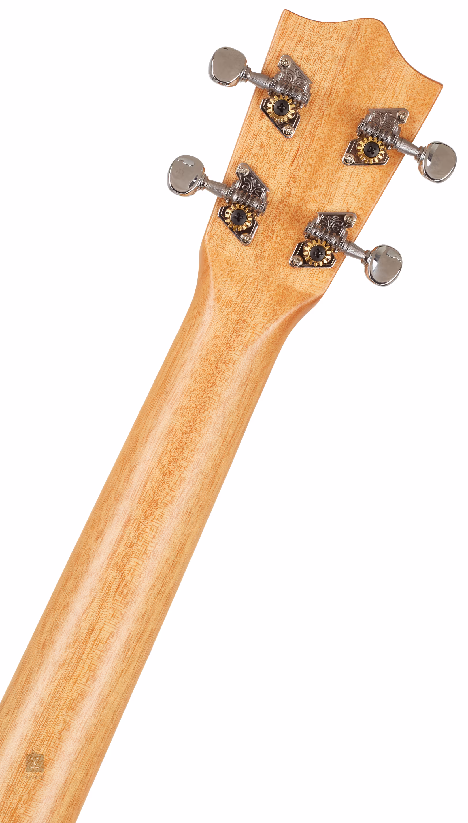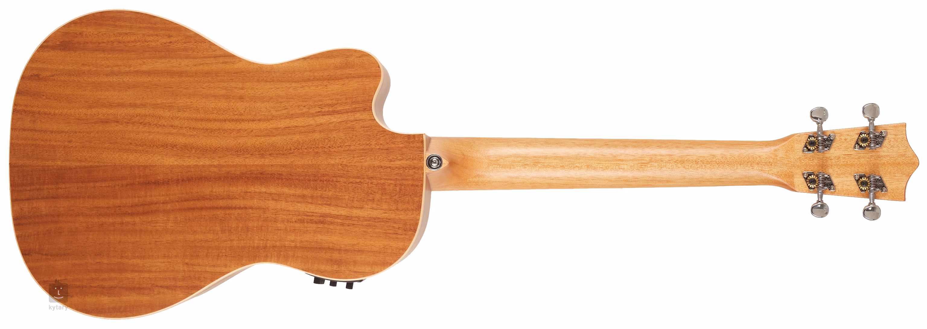 Přední deska tohoto elektroakustického barytonového ukulele je zhotovena z masivního dřeva akácie, které poskytuje nástroji tradiční vzhled a vřelý zvuk. Hmatník z ořechu je osazen osmnácti pražci, orientaci usnadňují poziční značky. Širší krk nástroje a nultý pražec nabízí pohodlný dohmat a pohyb na hmatníku, nultý pražec a sedlo z materiálu NuBone XB poskytují strunám dobrý sustain. Stabilitu ladění zaručují kvalitní otevřené chromované mechaniky. Pěkné zpracování podtrhuje rozeta a lemovka (těla a hmatníku) z javoru. Ukulele je dodáváno s obalem (gig bag) o tloušťce polstrování 10 mm.