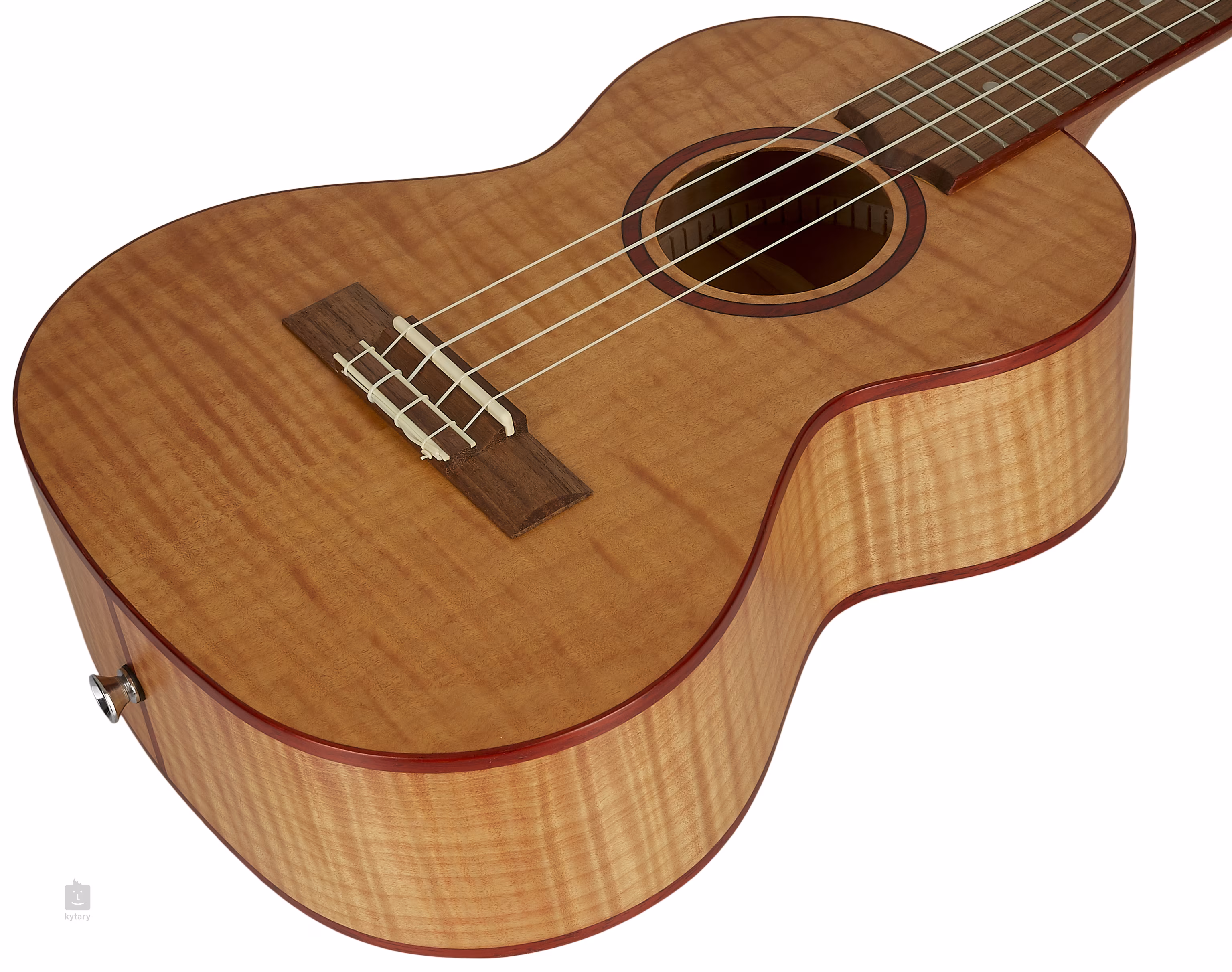 Tělo tohoto tenorového ukulele je zhotoveno z překližovaného fládrovaného javoru, který poskytuje nástroji kromě působivého vzhledu i jasný tón s výraznější charakteristikou ve středových frekvencích. Hmatník z ořechu je osazen sedmnácti pražci, orientaci usnadňují poziční značky. Širší krk nástroje a nultý pražec nabízí pohodlný dohmat a pohyb na hmatníku, nultý pražec a sedlo z materiálu NuBone XB poskytují strunám dobrý sustain. Stabilitu ladění zaručují kvalitní otevřené chromované mechaniky. Vizuální dojem podtrhují rozeta a lemovka (těla a hmatníku) z exotického dřeva bloodwood, které krásně kontrastují s barvou fládrovaného javoru. Ukulele je dodáváno s obalem (gig bag) o tloušťce polstrování 10 mm.