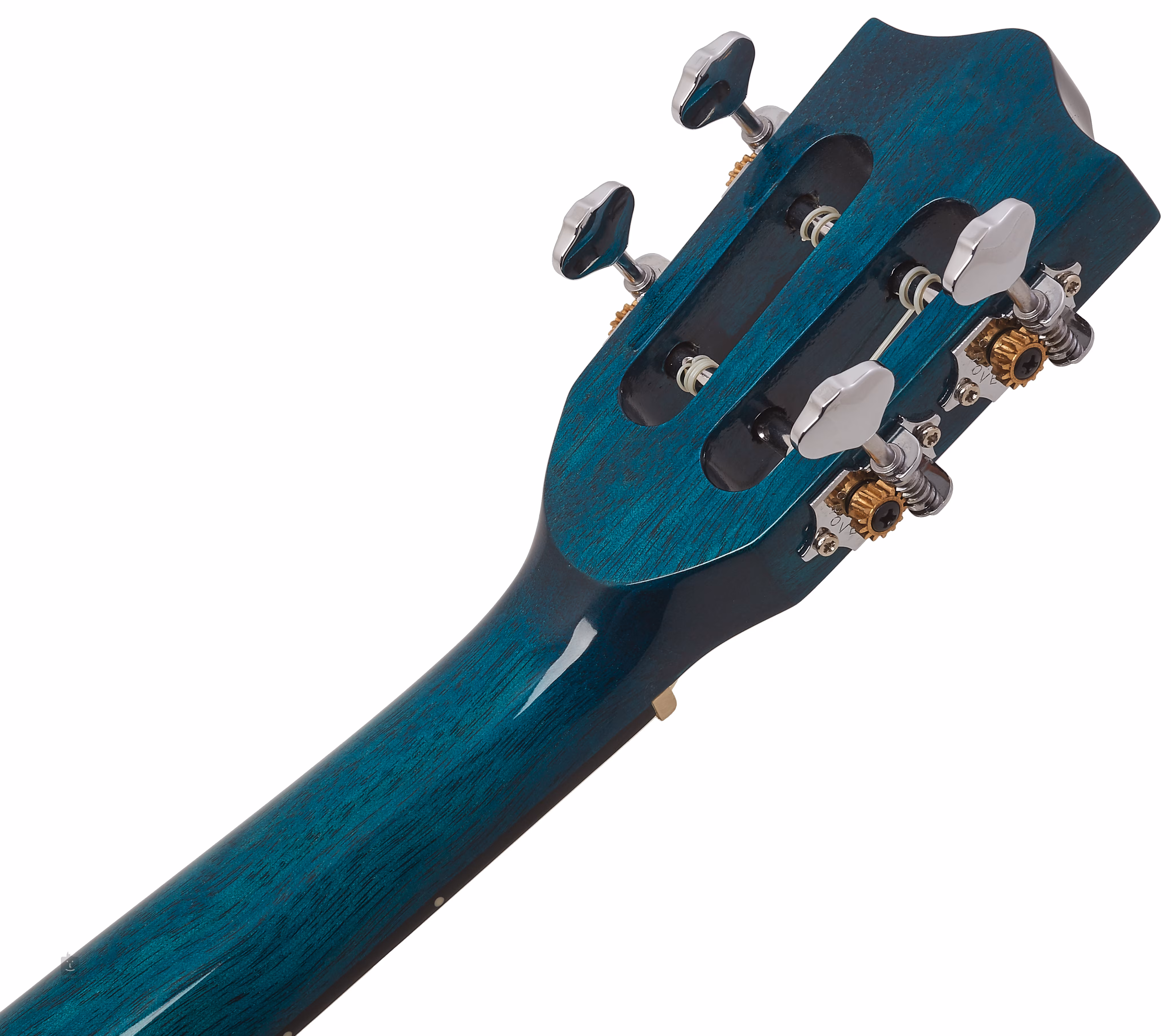 Tělo tohoto koncertního ukulele je zhotoveno z mořeného obláčkového javoru s působivou kresbou dřeva. K dispozici jsou tři verze barevných úprav – red (sun), natural (sand) a blue (surf). Hmatník z ořechu je osazen osmnácti pražci, orientaci usnadňují poziční značky. Širší krk nástroje a nultý pražec nabízí pohodlný dohmat a pohyb na hmatníku, nultý pražec a sedlo z materiálu NuBone XB poskytují strunám dobrý sustain. Stabilitu ladění zaručují kvalitní otevřené mechaniky Deluxe Grover s chromovanými kolíky. Vizuální dojem podtrhuje perleťová rozeta a lemovka (těla a hmatníku) z materiálu ABS. Ukulele je dodáváno v měkkém kufru s pěnovou vycpávkou (softcase).