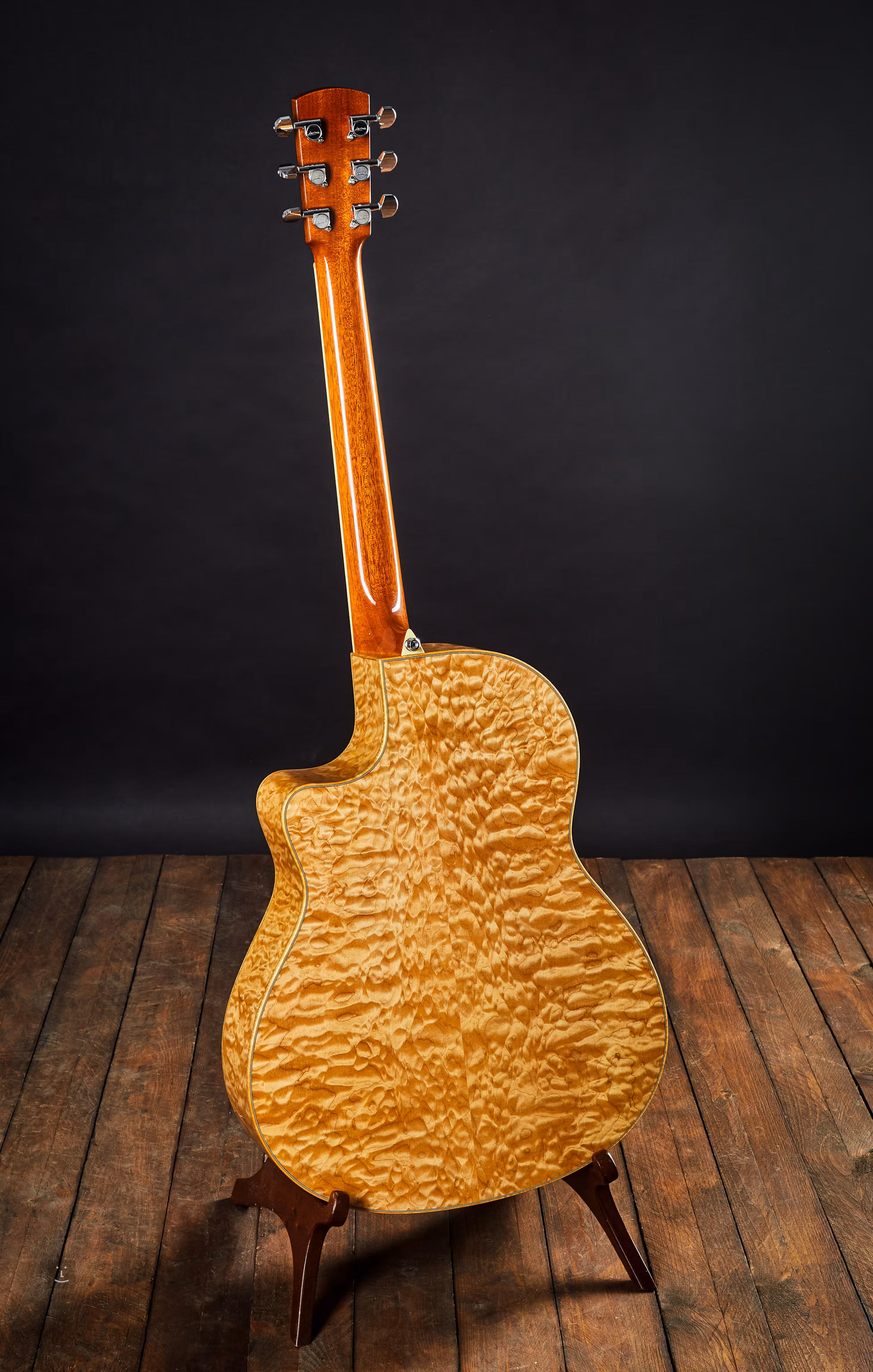 Narozdíl od běžného modelu LV09 je tato kytara postavena z výběrového obláčkového javoru (luby a zadní deska).