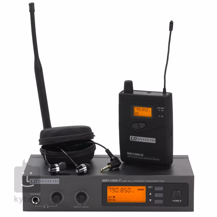 Vysílač ze systému MEI1000 dostanete spolu s adaptérem, který je třeba pro napájení, a odnímatelnou anténou. Dokáže pracovat se 160 frekvencemi v rozsahu od 790,85 do 813,8 MHz nebo od 838 do 862 MHz a zvládne pracovat s přijímačem ve vzdálenosti až 100 metrů. Přenášené frekvence jsou v rozsahu od 60 do 16 000 Hz. Pro přesné nastavení je na něm LCD display s ovladači. Navíc je možné připojit sluchátka přímo k němu. Pracuje v mono nebo stereo režimu, další zařízení k němu jde připojit pomocí dvojice Combo-Jack XLR konektorů. Beltpack přijímač se napájí dvěma AA bateriemi. Pro nastavení je na něm znovu LCD display s ovladači. Součástí jsou i sluchátka.