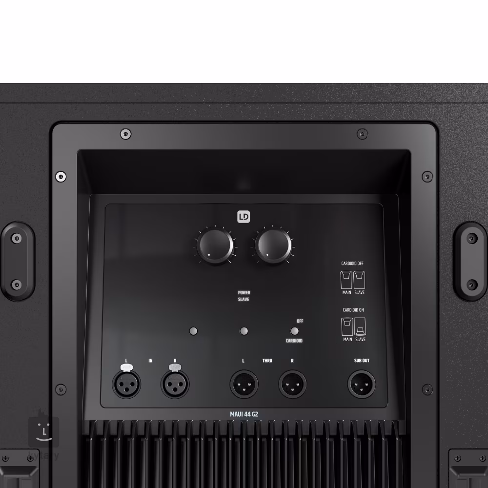 Aktivní patnáctipalcový subwoofer MAUI 44 G2 SUB k ozvučovacímu systému MAUI 44 G2. Nabízí optimalizované bassreflex porty, přepínač pro kardioidní nastavení subwooferu s atenuací 15 dB, možnost uchycení k plošině s kolečky (MAUI 44 G2 CB castor board), frekvenční rozsah v basech až do 37 Hz a dvě pogumované madla pro snadnou manipulaci s boxem.