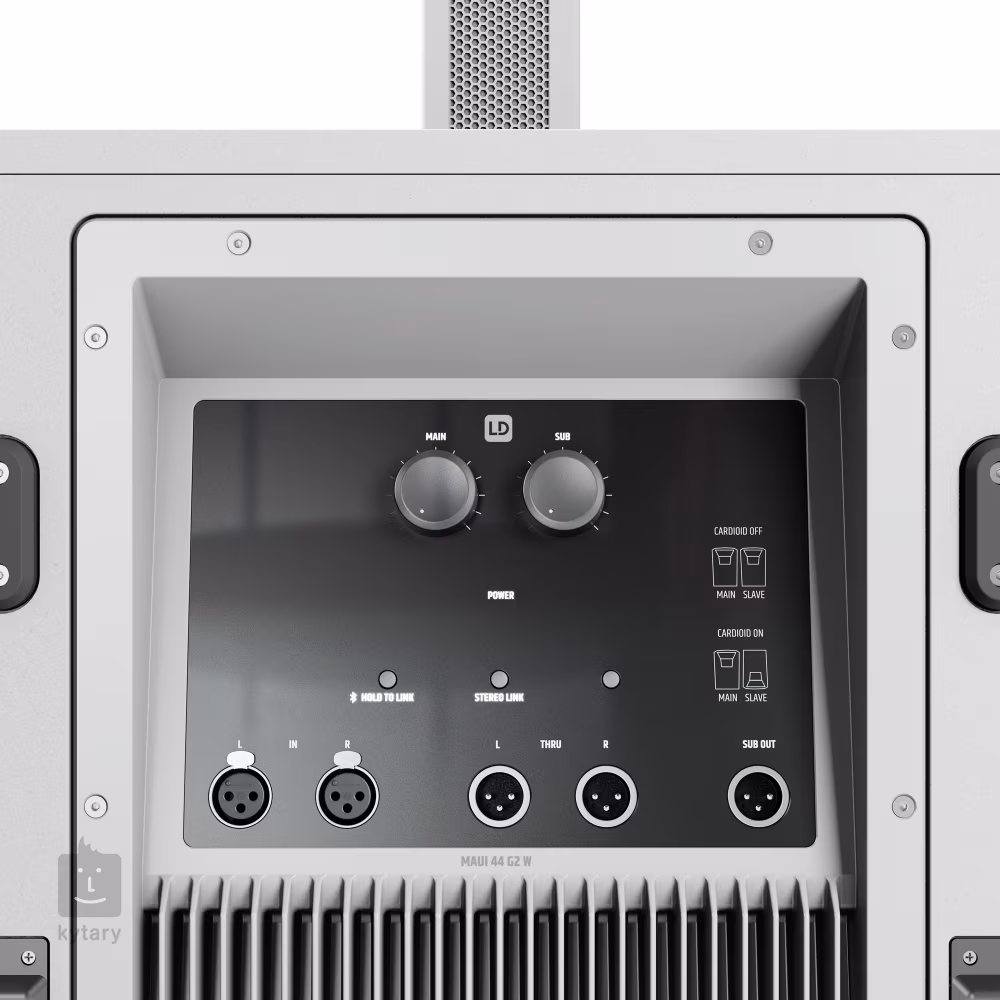 Subwoofer spolu se dvěma satelity a zesilovačem třídy D vám poskytne maximální výkon až 1500W. Hlavní panel je vybaven stereo XLR vstupy a ovladačem hlasitosti pro subwoofer nebo Main Volume pro celkovou hlasitost. K synchronizaci s Bluetooth stačí pouze najít ve svém smartphonu MAUI 44G2 a začnete streamovat vaši oblíbenou hudbu. Funkce Cardioid vám umožní rozptýlit u subwooferu nízké a střední frekvence do všech směrů. K připojení dalšího PA můžete využít stereo XLR výstupy a pokud byste měli ještě jednu sestavu MAUI 44 G2, tak je můžete propojit zcela bezdrátově čímž získáte brilantní stereo zvuk, který už opravdu zvládne ozvučit i větší venkovní koncerty. Rychlé a pohodlné propojení mezi dvěma satelity a subwooferem umožňuje sloupový systém zbavený jakýchkoliv kabelů. MAUI 44 G2 se tak hodí na mobilní instalace a bez problému ozvučí svatbu, venkovní koncert, konferenci, fitness centrum nebo koncert na lodi.