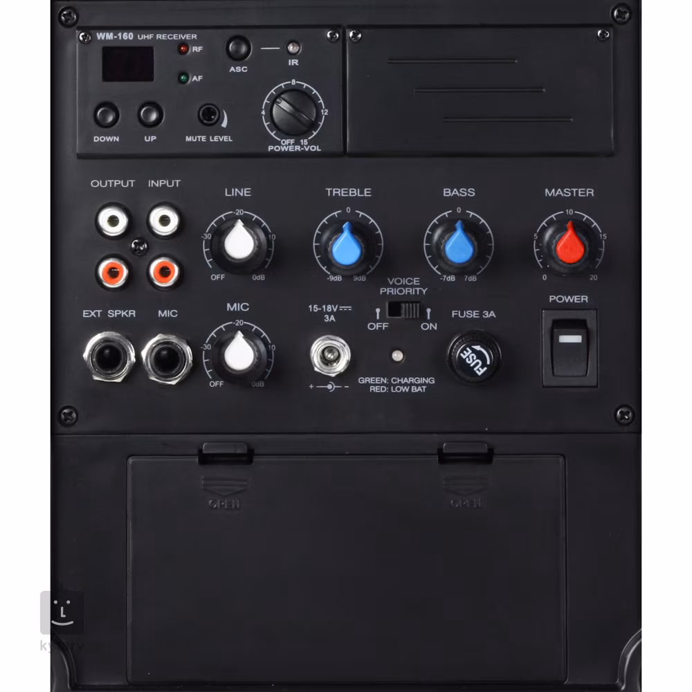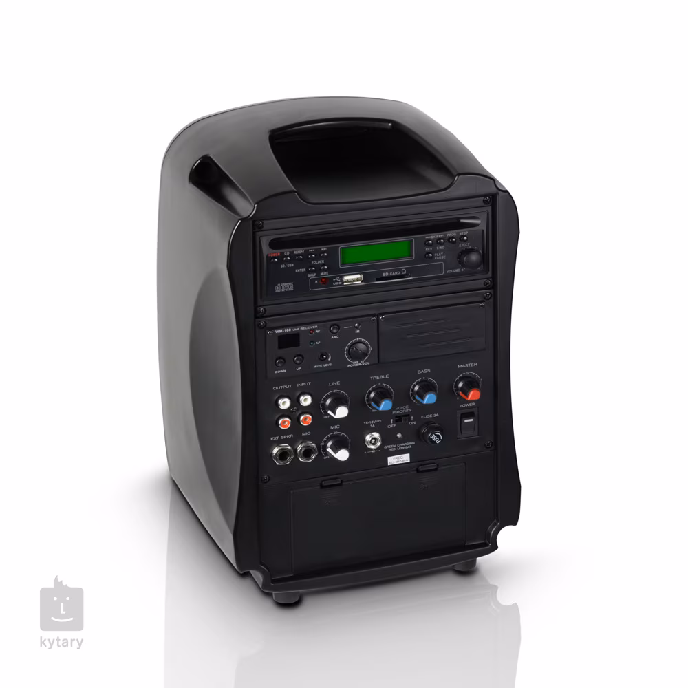 • Ovládání: Mic Gain, Master, Bass, Treble, Power, Line Gain