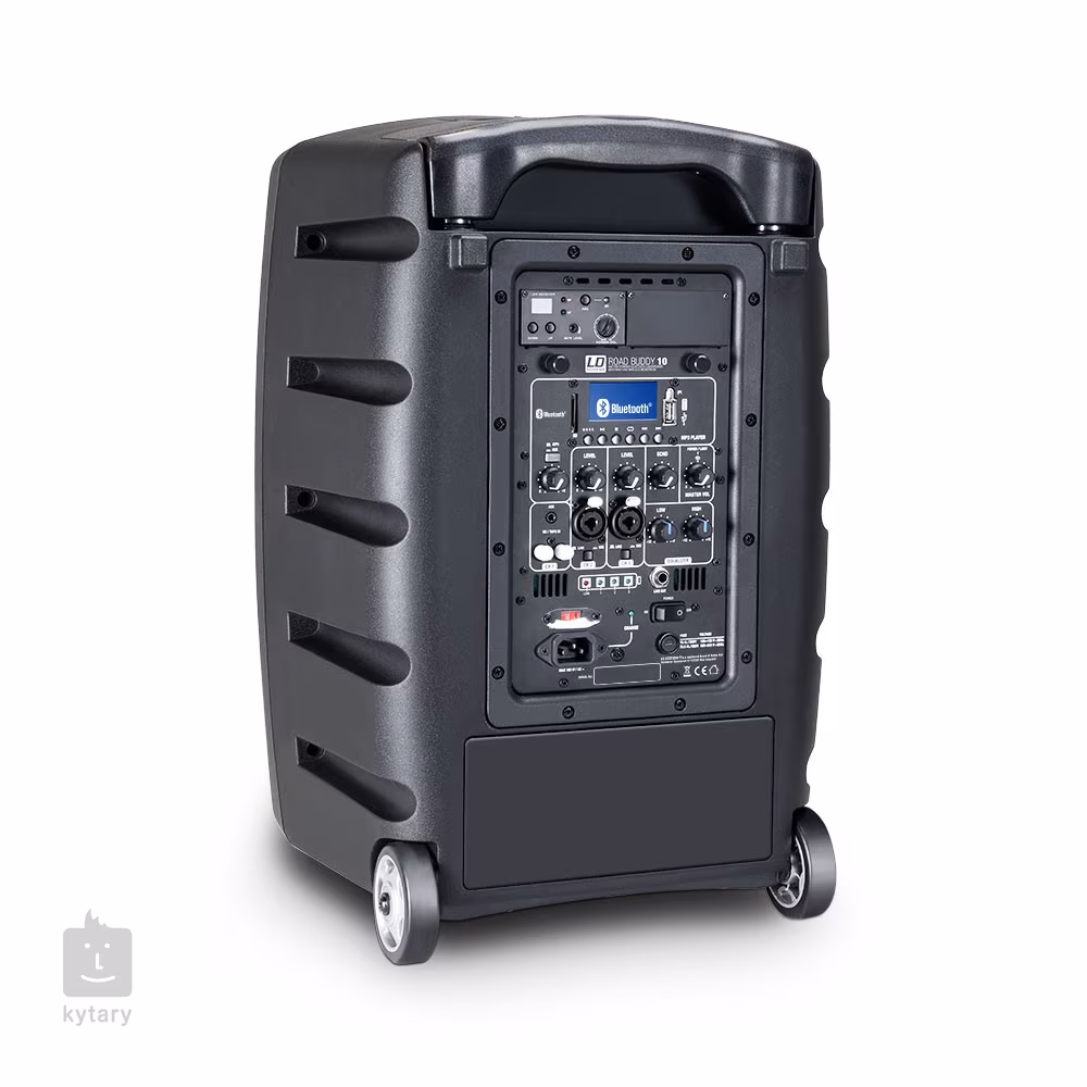 LD Systems Roadbuddy je snadno přenosný díky zabudovaným kolečkům a výsuvnému madlu. Na horní straně se nachází praktický úložný prostor pro až dva ruční vysílací mikrofony. Skříň tohoto lehkého zařízení byla navržena tak, aby se do ní vešel i 35 mm otvor na stativ.