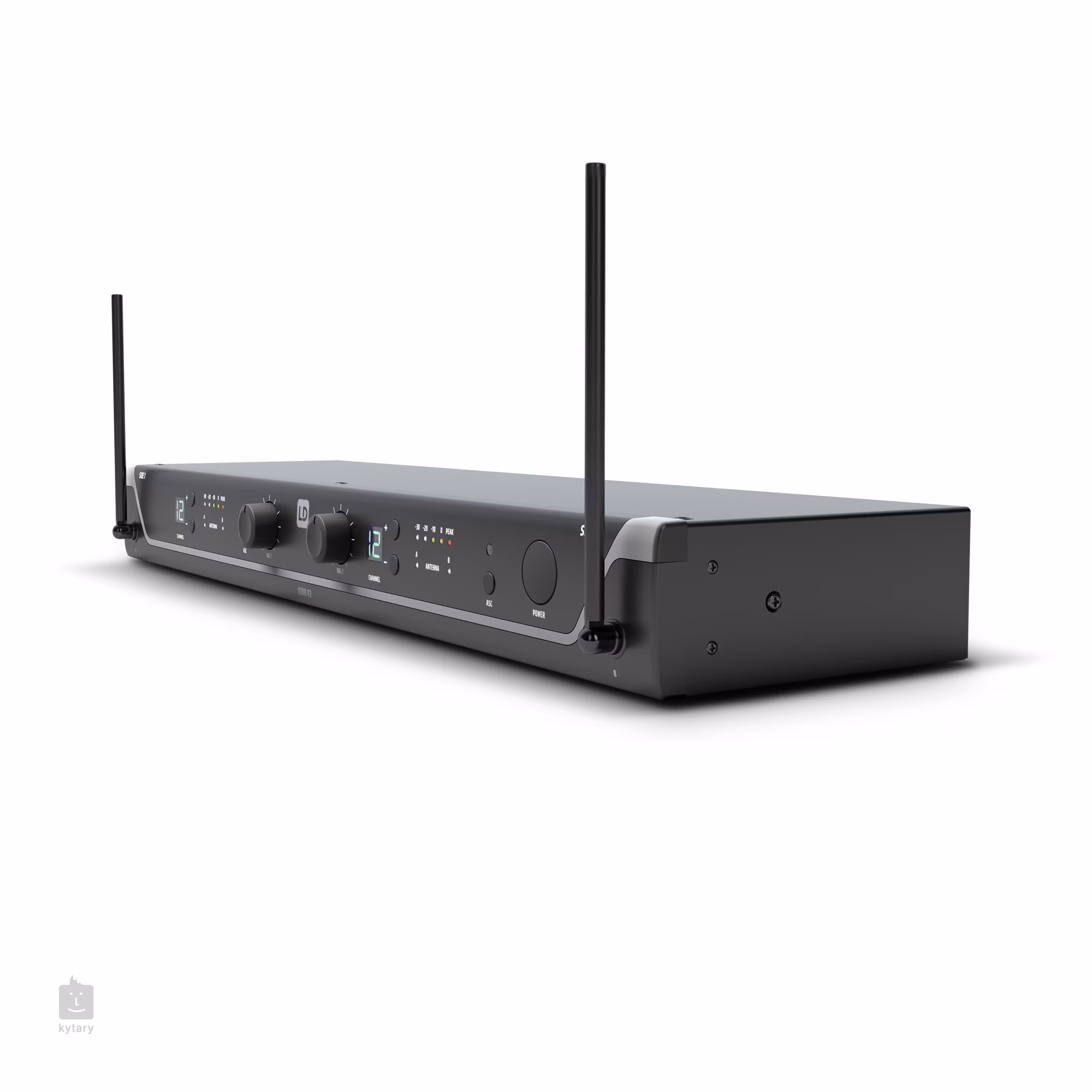 Součástí balení je přijímač, 2x vysílač, 2x náhlavní mikrofon, 2x protivětrný kryt, 2x AA baterie, adaptér a držák do racku.