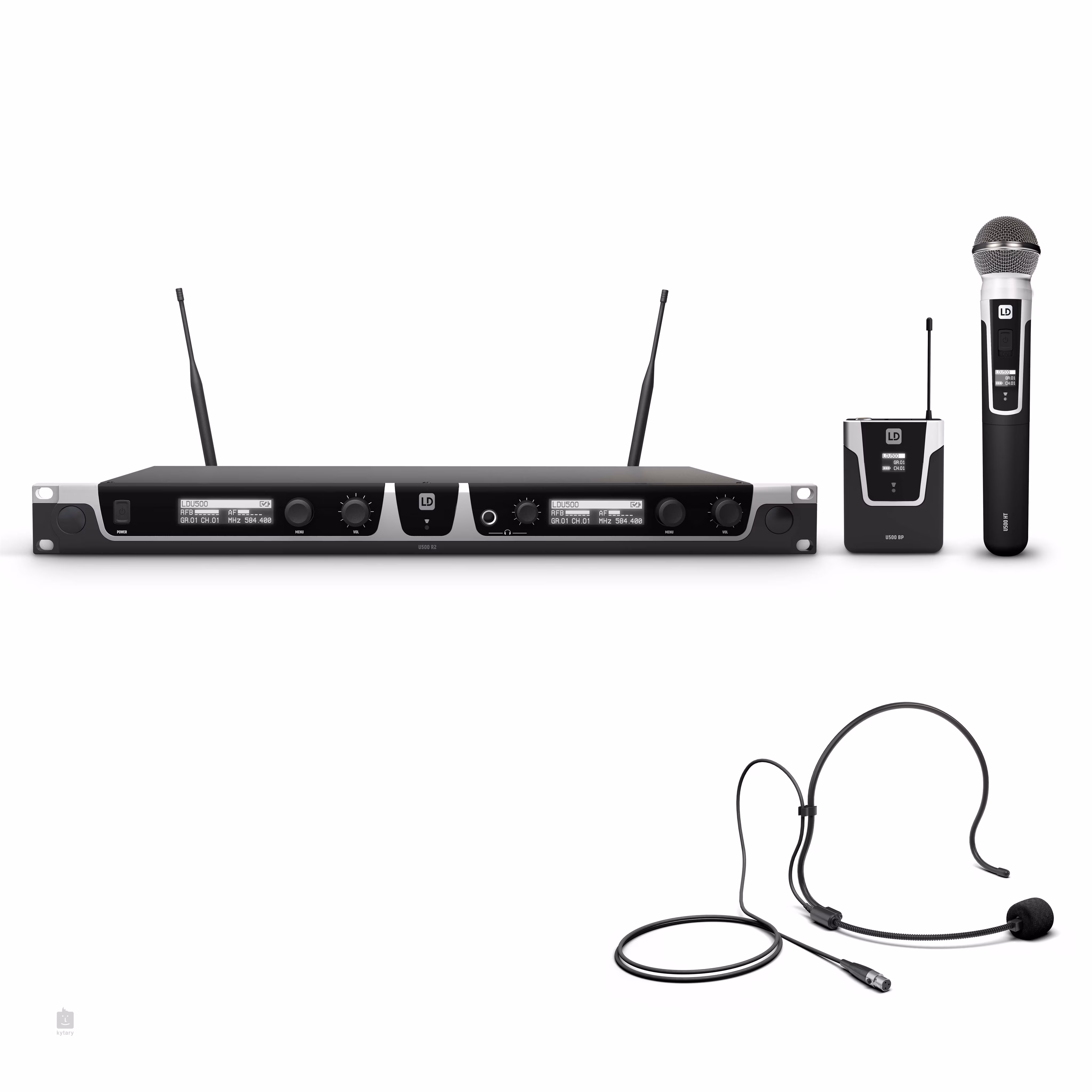 Součástí balení je přijímač, bodypack vysílač, dynamický mikrofon s vysílačem, náhlavní mikrofon, adaptér, protivětrný kryt a držáky do racku.
