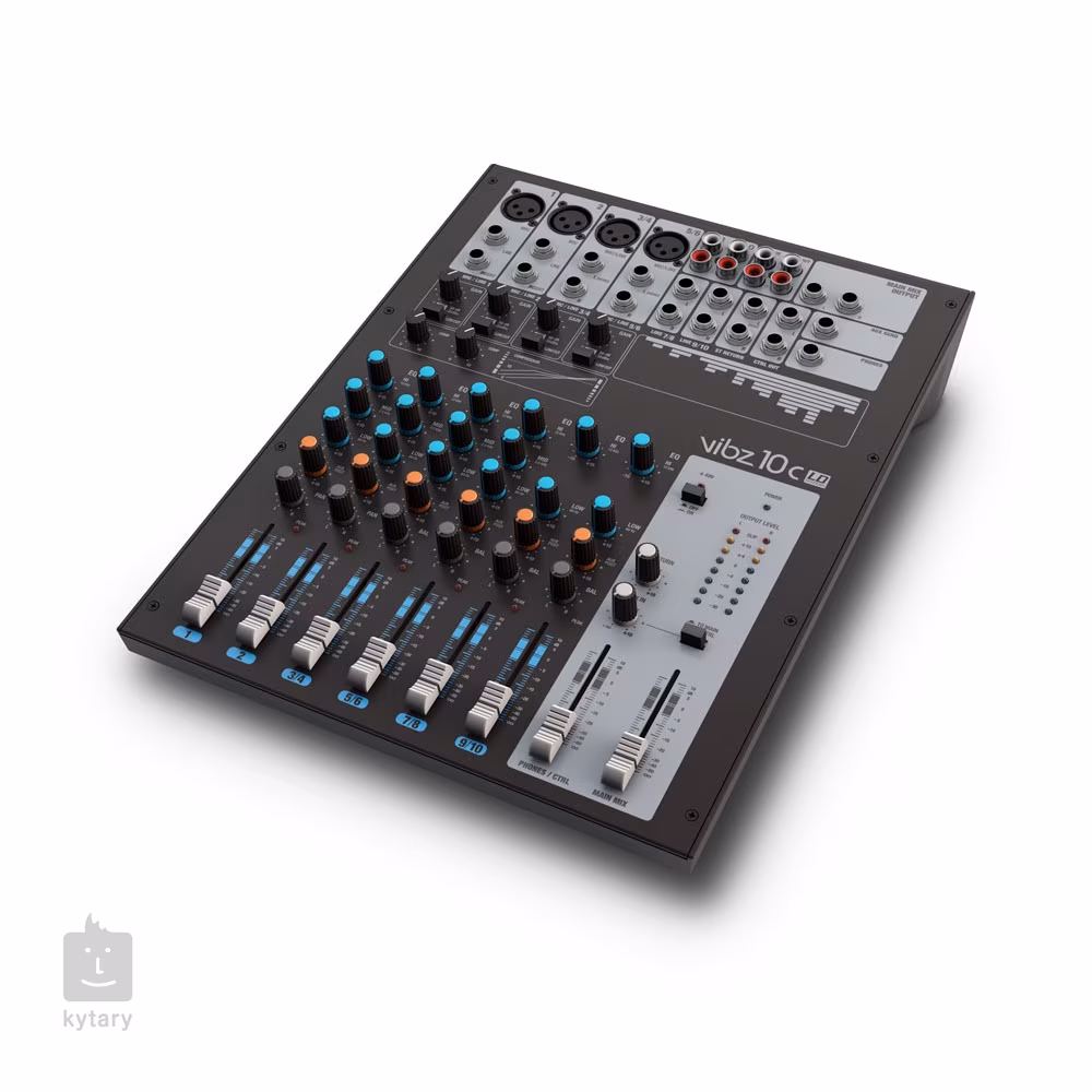 VIBZ 10 je ideální řešení pro zvučení menších kapel i akcí. Nabízí čtyři kanály se symetrickými mikrofonními/linkovými vstupy, třípásmovými korekcemi, fantomovým napájením a low cut filtrem, dva inserty pro použití externích efektů nebo dva stereo/mono kanály s dvoupásmovými korekcemi.