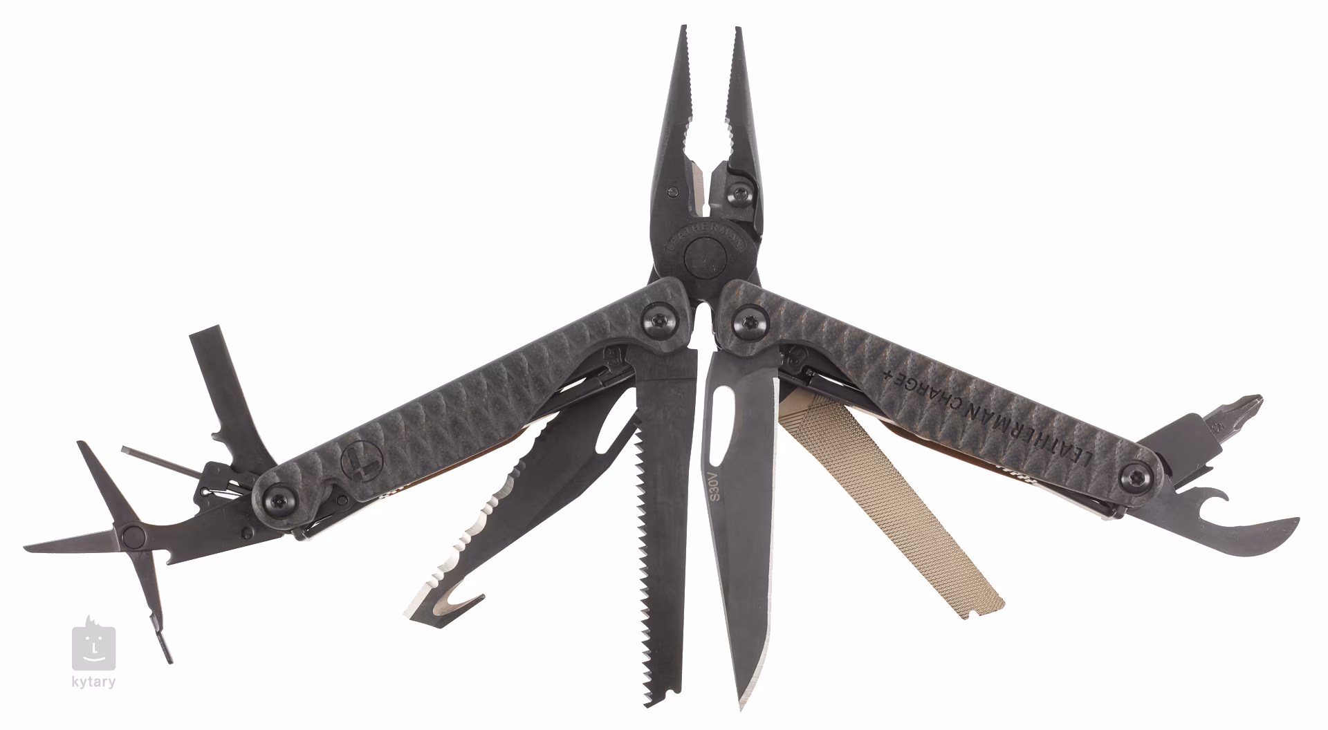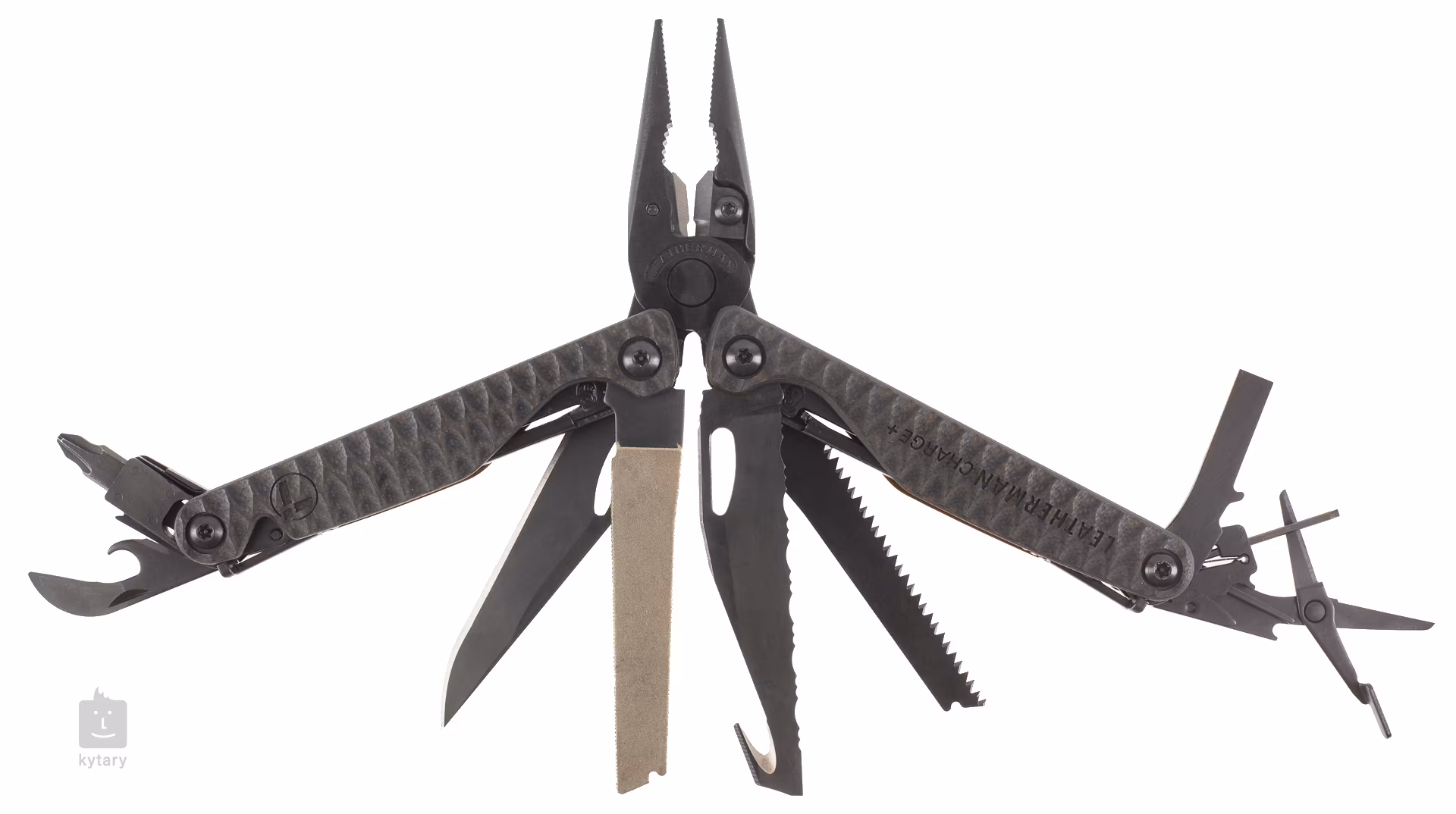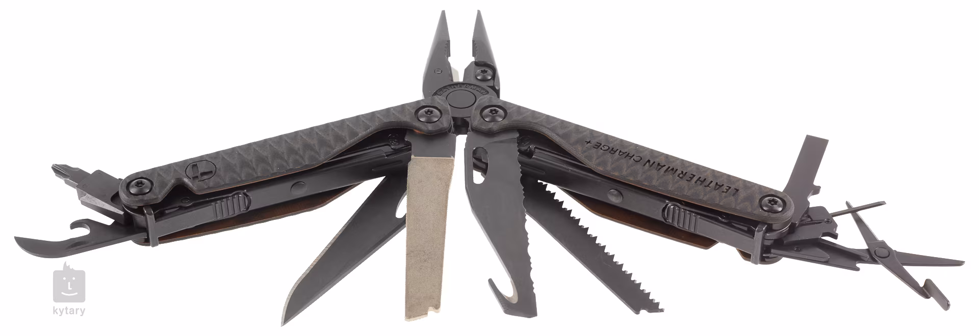 Leatherman Charge Plus je jedním z nejoblíbenějších multitoolů kvůli 19 funkčním nástrojům (mezi které patří nože, pilka, řezací hák, pilník, šroubováky či otvíráky), ale také díky špičkovým materiálům, ze kterých je konstruován. Nástroj s označením Plus je vybaven vyměnitelnými břity kleští, díky čemuž zůstává multitool jako nový i po mnoha letech usilovného užívání.