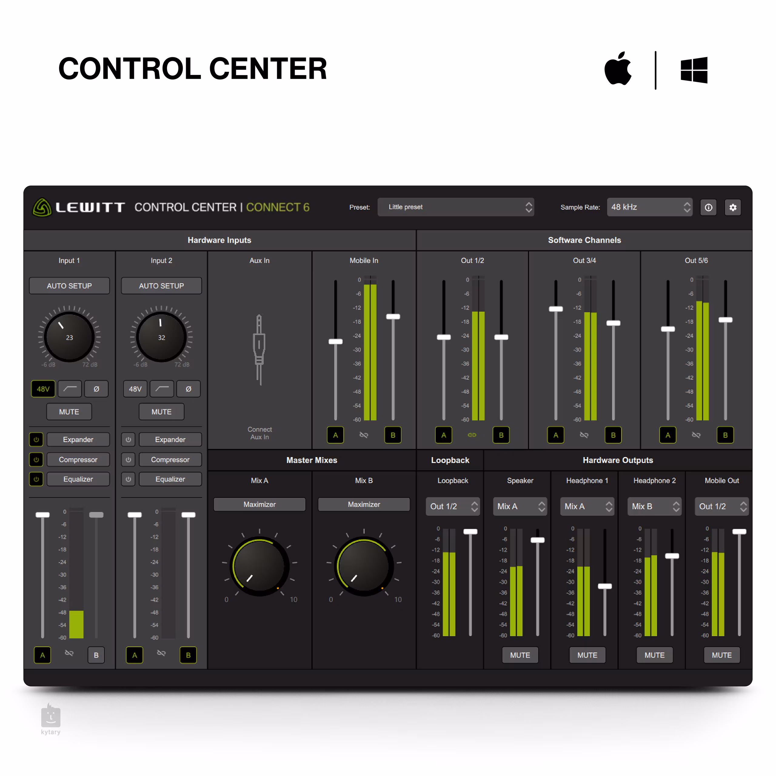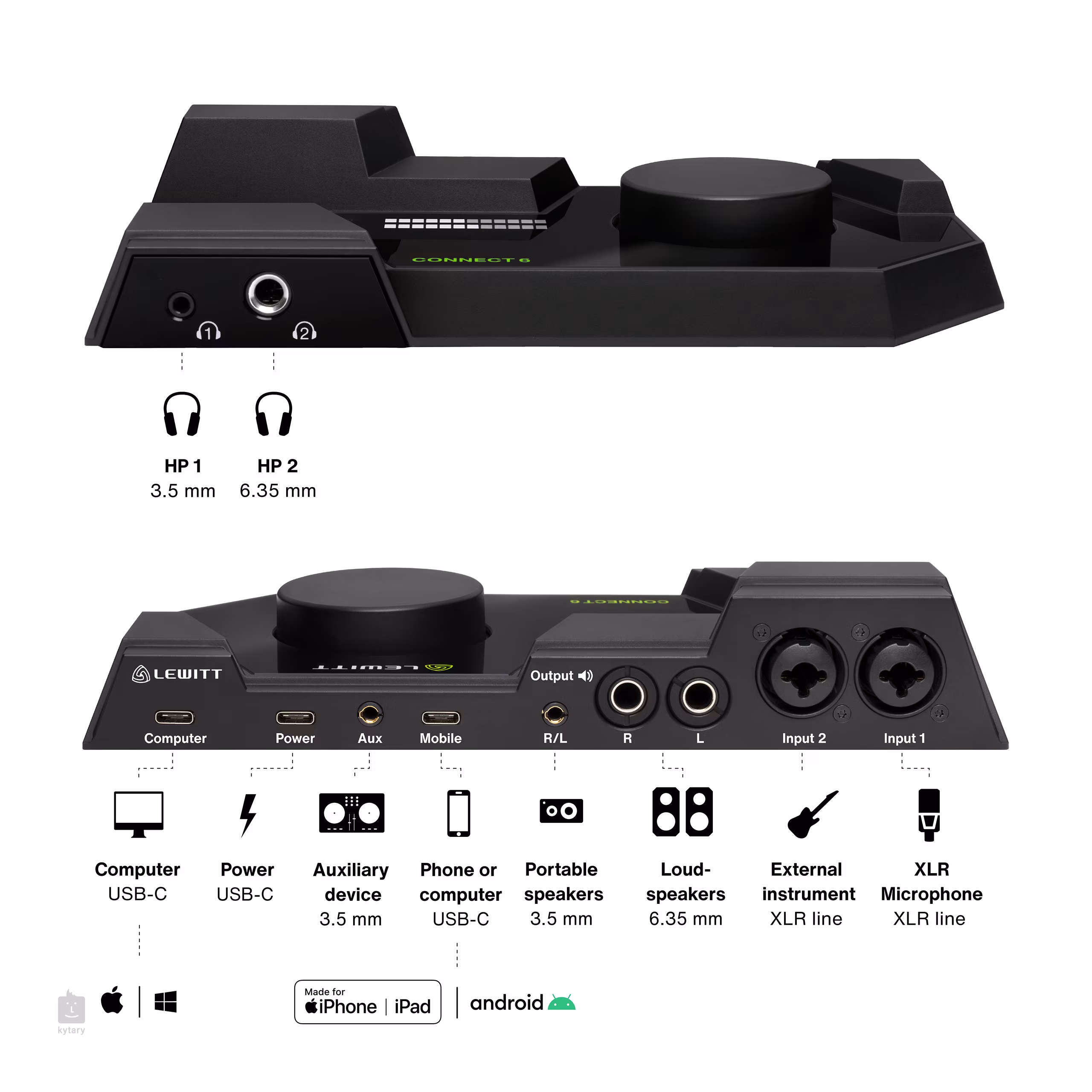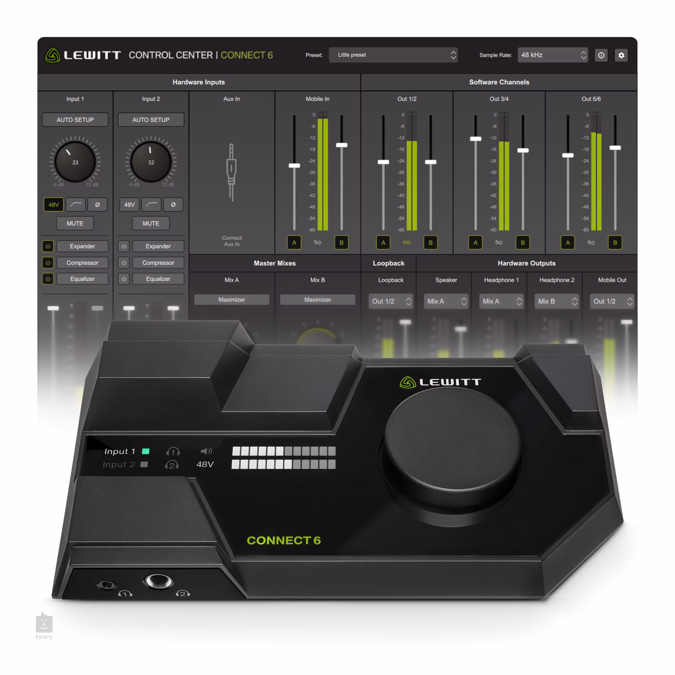 LEWITT Connect 6 je kompaktní USB-C zvuková karta přicházející v moderním elegantním designu, který bude vynikat na vašem stole. Jedná se o všestrannou zvukovku, kterou využijete pro nahrávání, streamování nebo hudební produkci. Přes USB-C kabel ji snadno zapojíte do svého počítače nebo smartphonu, ať už jste vyznavačem Apple zařízení nebo Androidu či Microsoftu. Zvuková karta je zároveň uživatelsky přívětivá, takže nebudete ztrácet čas dlouhým nastavováním. Stáhněte si software Control Center a ten udělá většinu práce za vás. Najdete zde funkci Autosetup, která vám v každé situaci pomůže nastavit optimální parametry a také integrované DSP (Digital Signal Processing) vybavené kompresorem, ekvalizérem a dalšími užitečnými funkcemi – svůj zvuk tak můžete rovnou upravovat bez použití DAW a využít nulové latence.