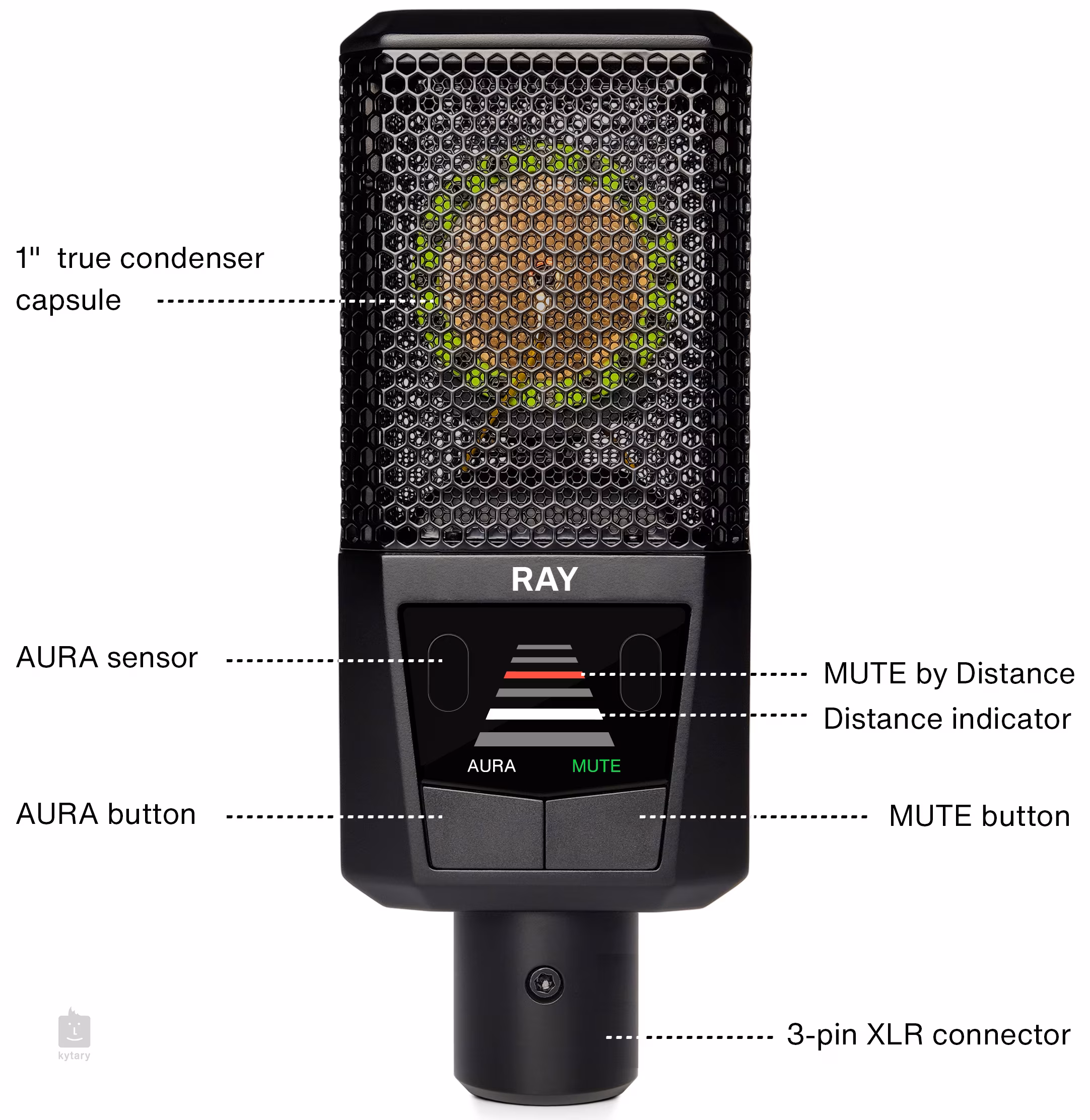 Pravá kondenzátorová kapsle a špičkové studiové specifikace 1” kondenzátorová kapsle je studiovým standardem pro detailní vokální nahrávky. Pozlacená kapsle RAY je vybavena kardioidní snímací charakteristikou, která zaznamenává dění před mikrofonem a zároveň potlačuje zvuk přicházející zezadu. Mikrofon disponuje neuvěřitelně nízkým šumem - pouhých 8 dB(A) a schopností zvládnout hladinu akustického tlaku až 131 dB SPL.