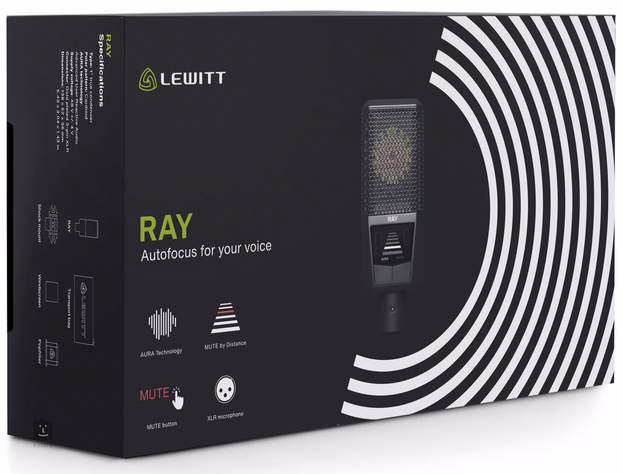 Lewitt RAY je kondenzátorový mikrofon s 1” pozlacenou membránou s kardioidní charakteristikou a moderní snímací funkcí Aura.