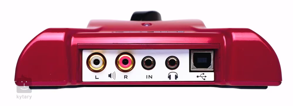 Naleznete na něm standardní 6,3 mm Jack pro připojení nástroje, 3,5 mm Jack pro připojení externích zařízení, stereo RCA výstup pro připojení například reproduktorů, sluchátkový výstup a nakonec USB konektor.