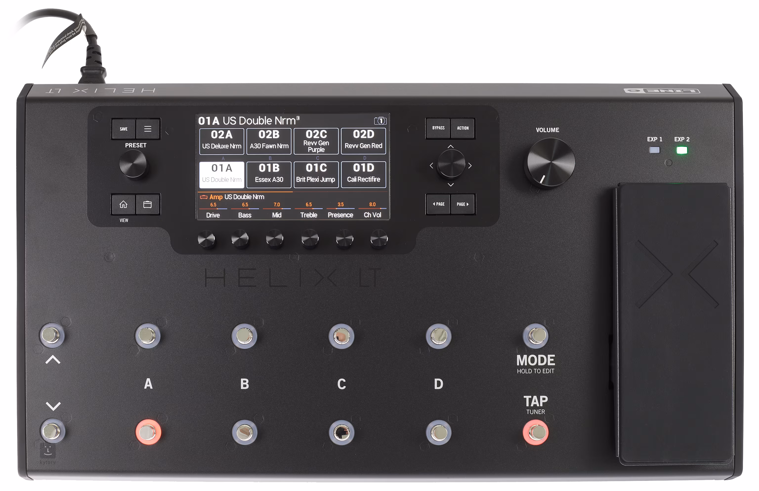 Díky inteligentnímu rozhraní a designu můžete snadno a rychle ovládat a editovat jednotlivé presety. K přiřazení vybraného presetu ke konkrétnímu footswitchi vám budou stačit pouhé tři vteřiny. Funkce Snapshot umožňuje vytvořit až osm variací jednoho presetu a plynulý přechod mezi nimi. V režimu Pedal Edit navolíte switchem blok/parametr a jeho nastavení měníte pomocí Expression pedálu. Široký LCD display zobrazuje celý signálový řetězec; vy tak máte stálý přehled o zapojení jednotlivých komponentů v rámci signálové cesty.