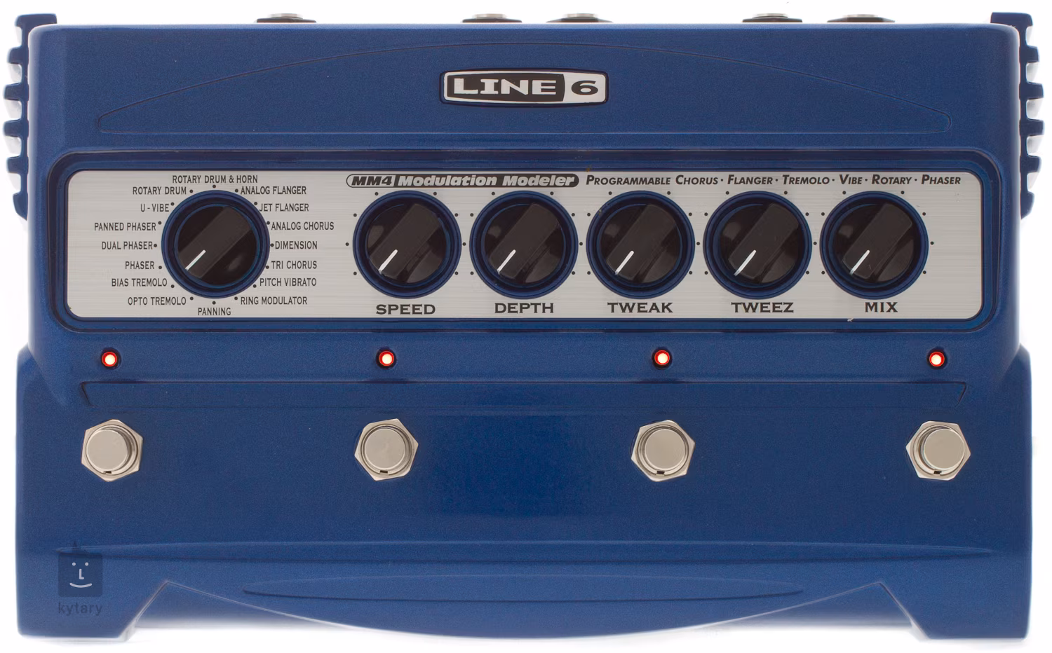 Pro ovládání MM4 slouží pět potenciometrů. Speed a Depth pracují zcela standardně, takže ovlivňují rychlost a výraznost modulace. Tweak a Tweez slouží k bližší úpravě parametrů jednotlivých efektů, takže u každého modelu fungují trochu jinak. Mix pak určuje hlasitost efektů.