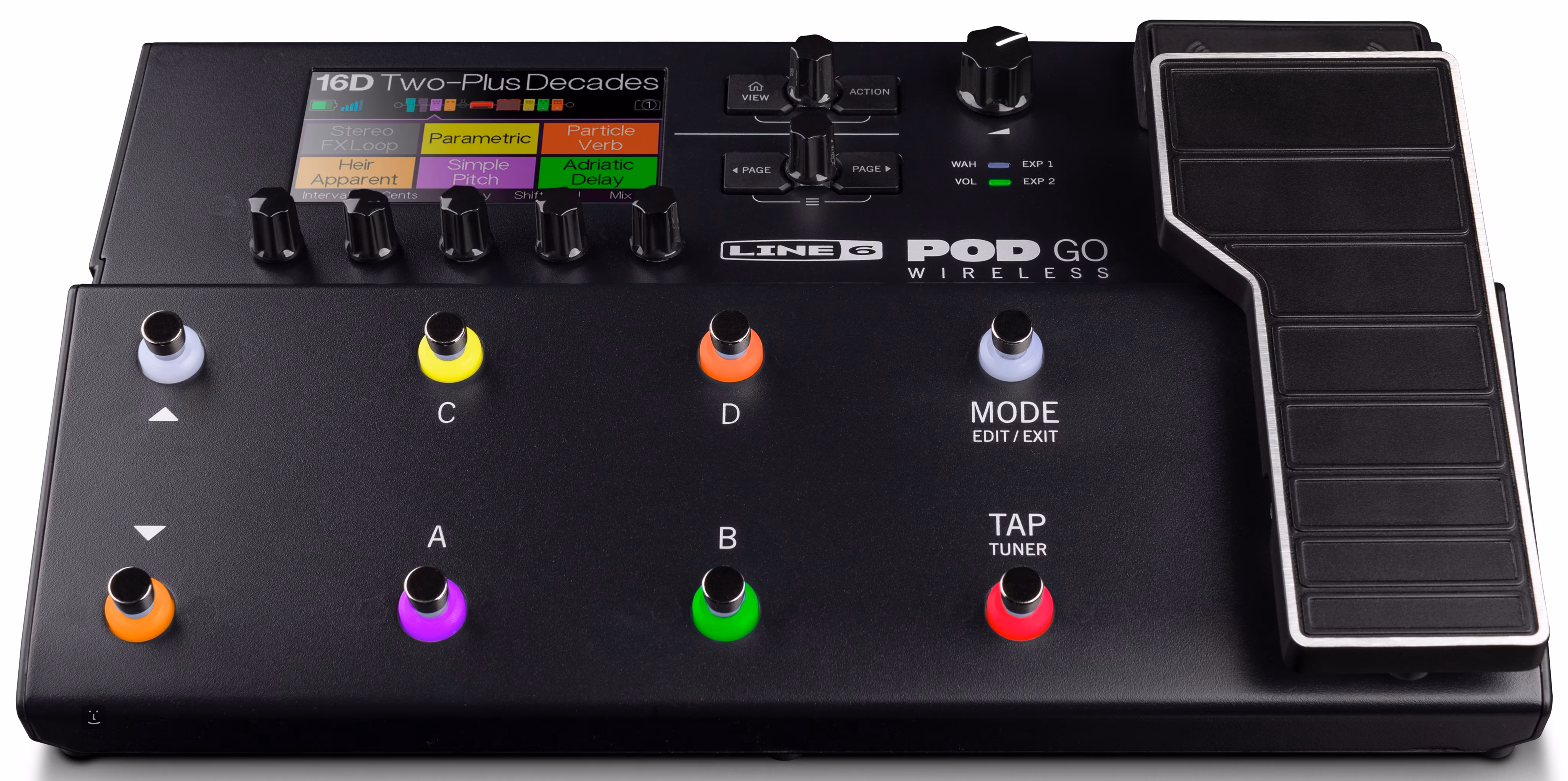 LINE6 POD GO Wireless je lehký snadno přenosný kytarový multiefekt s jednoduchým uživatelským rozhraním, který dokáže nahradit váš kompletní kytarový rig, tj. pedálové efekty, zesilovač a reprobox. Představuje tak ideální volbu pro situace, kdy nepotřebujete plnou „kiláž a metráž“ standardní kytarové sestavy, tj. na domácí hraní/nahrávání, prezentace, workshopy, ale dobře poslouží i jako záložní aparát. Díky integrovanému přijímači a přibalenému vysílači G10TII jej navíc můžete používat téměř kdykoliv je k tomu vhodná příležitost.