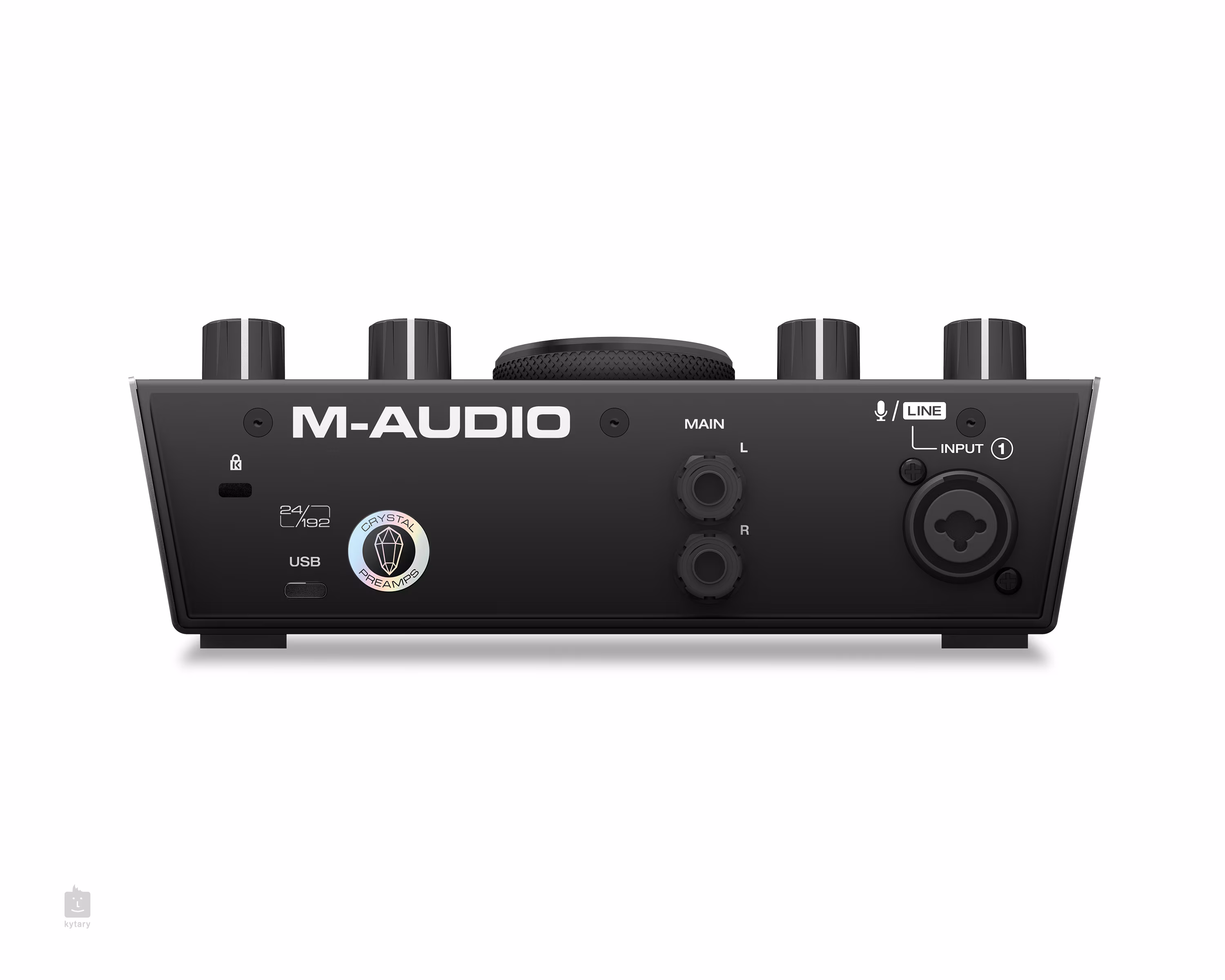 M-Audio AIR 192/4 Vocal Studio Pro Vocal Studio Pro je studiový set obsahující zvukovou kartu, kondenzátorový mikrofon a komfortní uzavřená sluchátka. Kompaktní dvoukanálová zvuková karta AIR 192/4 nabízející zvukový záznam o kvalitě 192kHz/24 bit je vhodná pro detailní monitoring při nahrávání nebo postprodukci vašich nahrávek. Přední panel disponuje nástrojovým vstupem pro připojení kytary, baskytary nebo klávesových nástrojů, dále zde naleznete sluchátkový výstup pro práci v době nočního klidu a spínáč fantomového napájení pro oba kanály. Horní ovládací panel vám potom nabídne dva potenciometry Gain pro vstupní signál, USB/Direct knob pro mix vstupního signálu, robustní Main Volume a ovladač hlasitosti sluchátkového výstupu. Čtyřúrovňová LED stupnice vám potom poskytne detailní přehled o hlasitosti vstupního signálu. Zadní strana vám nabídne stereo výstup pro studiové monitory, kombinovaný vstup pro mikrofon nebo další hudební zařízení a ultra rychlý USB (C) port pro PC nebo laptop. Součástí balení jsou dva USB kabely a balíček se softwary.