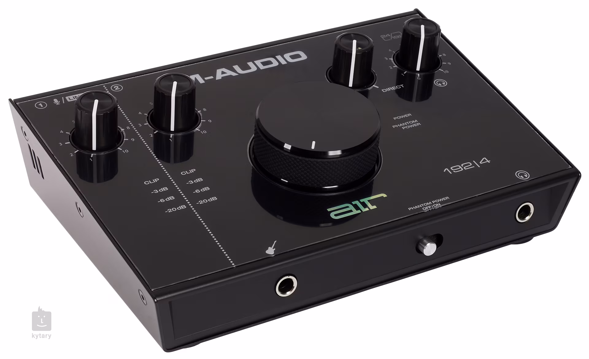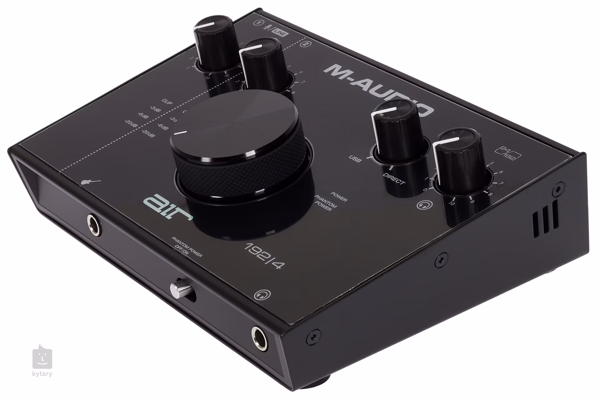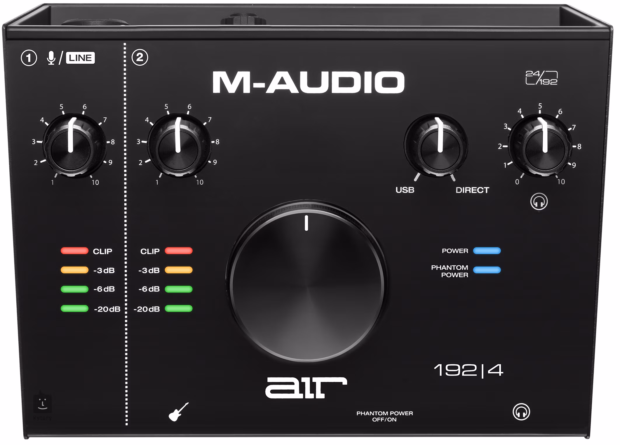 M-Audio AIR 192/4 192/4 je kompaktní dvoukanálová zvuková karta nabízející zvukový záznam o kvalitě 192kHz/24 bit a je vhodná pro detailní monitoring při nahrávání nebo postprodukci vašich nahrávek. Přední panel disponuje nástrojovým vstupem pro připojení kytary, baskytary nebo klávesových nástrojů, dále zde naleznete sluchátkový výstup pro práci v době nočního klidu a spínáč fantomového napájení pro mikrofonní vstup. Horní ovládací panel vám potom nabídne dva potenciometry Gain pro vstupní signál, USB/Direct knob pro mix vstupního signálu, robustní Main Volume a ovladač hlasitosti sluchátkového výstupu. Čtyřúrovňová LED stupnice vám potom poskytne detailní přehled o hlasitosti vstupního signálu. Zadní strana vám nabídne stereo výstup pro studiové monitory, kombinovaný vstup pro mikrofon nebo další hudební zařízení a ultra rychlý USB (C) port pro PC nebo laptop. Součástí balení jsou dva USB kabely a balíček se softwary.