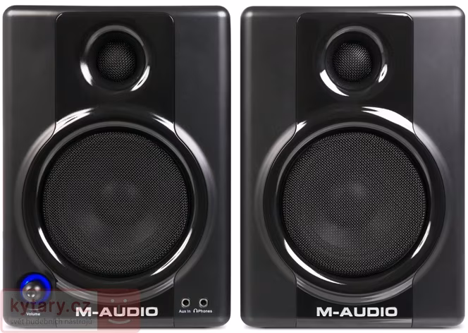 Kompaktní aktivní studiové referenční monitory Studiophile AV40 jsou založeny na stejné osvědčené zvukové technologii firmy M-Audio, která si získala oblibu u řady špičkových hudebních umělců a producentů po celém světě. Kombinace 4 palcového polypropylénového basového reproduktoru a 3/4 palcového výškového reproduktoru dodává reprodukovanému zvuku plné basy, a detailní průzračné výškové frekvence. Dřevěné kabinety byly navrženy speciálně pro tento model. Studiophile AV40 monitory využívají technologie OptImage III a jsou osazeny 20 wattovými interními zesilovači typu Class A/B. AV40 jsou skvělým řešením pro hudebníky, kteří často pracují na cestách nebo pro všechny, kdo uvítají špičkový zvuk pro svůj stolní multimediální systém
