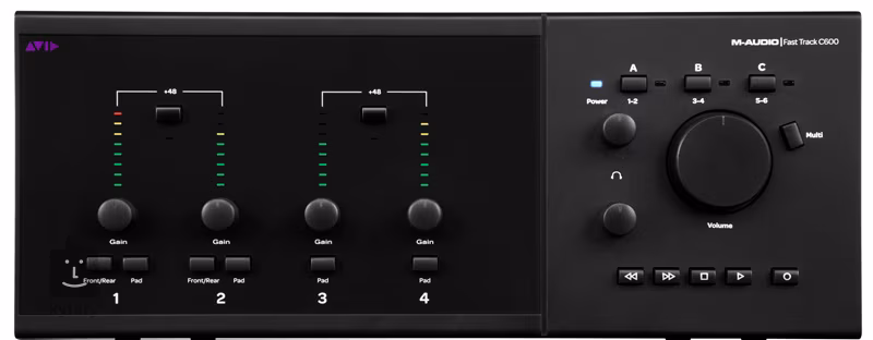 M-Audio Fast Track C600 je kompaktní a ergonomické USB zvukové rozhraní s možností záznamu zvuku až do 24bit/96kHz na 6 kanálech současně (4 analogové vstupy, 2 digitální). Pokud jde o přehrávání a mix, k dispozici je 8 výstupů (6 analogové a 2 digitální) a samostatným výstupem na sluchátka.