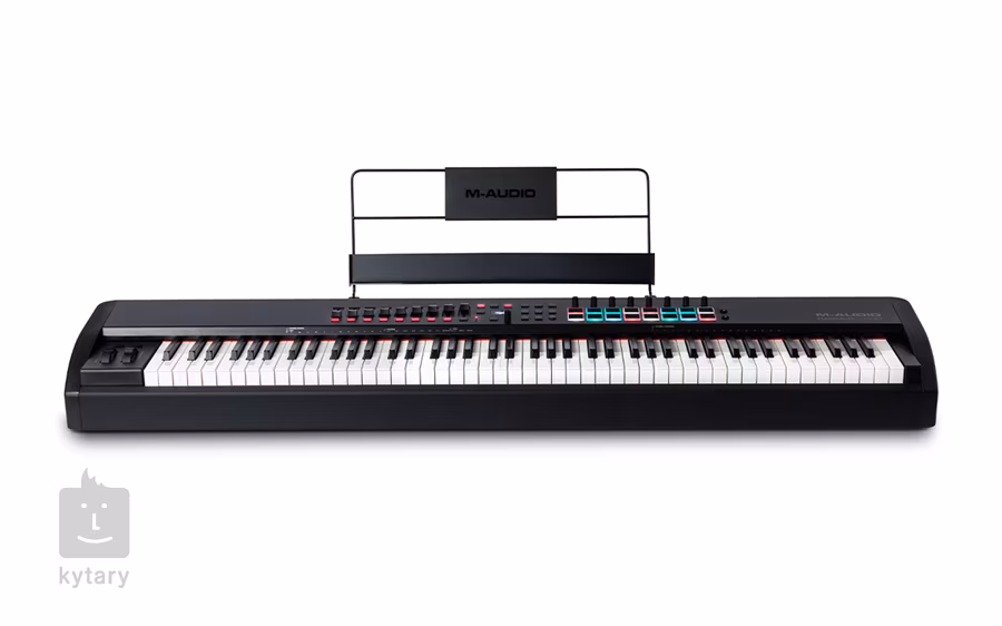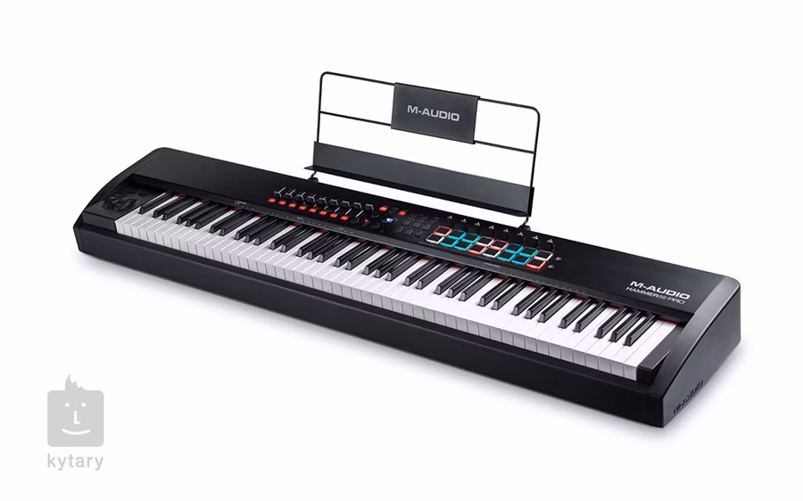 Hammer 88 PRO nabízí kompletní produkční hudební balík vhodný pro každého studiového producenta i muzikanta. MIDI keyboard s 88 klávesami, špičkovou kladívkovou mechanikou, nebo aftertouch a přiřaditelnými zónami. Dále zde naleznete 16 RGB plně mapovatelných padů s note repeat pro beat produkci, spouštění klipů, 8 přiřaditelných knobů pro ovládání libovolných parametrů, nebo 9 takových faderů. Hammer 88 Pro také disponuje funkcemi jako Smart Chord a Smart Scale pro zjednodušení hraní, arpeggiator s Type, OCtave, Gate a Swing parametry. Pro ještě optimálnější hru nabízí MIDI klávesy ergonomický pitch a modulační wheel, nebo vstupy pro footswitch a expression pedály. Přehlednou vizuální kontrolu potom získáte prostřednictvím OLED displeje. Součástí balení je navíc softwarový balíček s Ableton Live Lite, MPC Beats, Mini Grand, Velvet, Hybrid 3 a Touch Loops.