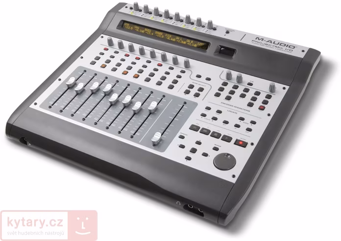 ProjectMix I/O nabízí prakticky vše, co můžete v počítačovém studiu potřebovat. Toto zařízení je FireWire zvuková karta, mikrofonní předzesilovač, MIDI rozhraní a samozřejmě úžasný kontrolér s motorizovanými fadery. Na zadním panelu najdete osm analogových vstupů s mikrofonními předzesilovači kombinované s osmi jackovými linkovými vstupy. Samozřejmostí je i fantomové napájení. Navíc první kanál disponuje možností přepnout na nástrojový vstup, který najdete na předním panelu. Optický ADAT rozšiřuje počet vstupních kanálů na 16 – můžete k němu použít například M-Audio Octane a mít tak ve svém studiu 16 mikrofonních předzesilovačů. Další dva vstupy získáte prostřednictvím cinchů – S/PDIF. WordClock synchronizuje zařízení s okolním světem. Vedle toho také ProjectMix I/O pracuje jako MIDI rozhraní 1x1, jež vám umožní připojit zařízení k libovolnému MIDI hardwaru. Co se týká výstupů, nabízí ProjectMix I/O dva nezávislé stereo páry. Ty můžete zapnout do aktivních monitorů nebo zařízení pro mixdown. K tomu navíc disponuje dvěma nezávislými výstupy pro sluchátka. Pakliže se vám počet výstupů zdá malý, vězte, že můžete využít ještě 8 kanálů ADAT a 2 S/PDIF. Tohle vše nabízí ProjectMix I/O jednoduchým připojením k vašemu stolnímu počítači nebo notebooku přes FireWire. Ovládání přehrávání aplikací z panelu ProjectMix I/O je další obrovská úspora času, díky níž je práce příjemným zážitkem. Nemusíte stále sahat na klávesnici a myši se dotknete jen výjimečně… Na desce najdete tlačítka pro nahrávání, přehrávání, stop, přetáčení, kolečko jog/shuttle pro jednoduchou navigaci v projektu. Sada tlačítek pro markery, zoom, nudge, looping a spoustu dalších funkcí vám poslouží, abyste mohli pracovat s maximální efektivitou. Abyste za své peníze dostali nejvíc, kolik jen můžete, snažila se firma M-Audio vložit do ProjectMixu co nejvíc vlastností. Uživatele rozhodně potěší 10bitové motorizované fadery (velmi velmi tiché) citlivé na dotek (pro čtení a zápis automatizace) a velký LCD displej. Na každém kanálu máte po ruce také přepínače mic/line, zapínání mute/solo, programovatelný nekonečný potenciometr (ovládání panoramy, EQ, pluginů…) a další. Na druhou stranu vývojáři M-Audio ze zkušenosti ví, že velká spousta možností takovýchto kontrolérů bývá nevyužita, takže se raději soustředili na to nejdůležitější. Tím také ProjectMix I/O získává další důležitou vlastnost. Je velice jednoduché se s ním naučit pracovat. Fakt, že má ProjectMix I/O pouze devět motorizovaných faderů, samozřejmě neznamená, že s ním můžete ovládat jen osm kanálů a master. Tlačítky Bank +/- jednoduše procházíte sadami osmi kanálů. Bez ohledu na to, kolik stop váš projekt má, ovládáte je všechny.