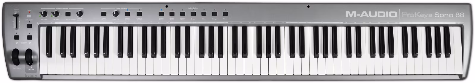 ProKeys Sono 88 má polovyváženou klaviaturu, která je samozřejmě citlivá na dynamiku úhozu. Rozsah činí 7 a půl oktávy, což je 88 kláves standardní velikosti a zdvihu.