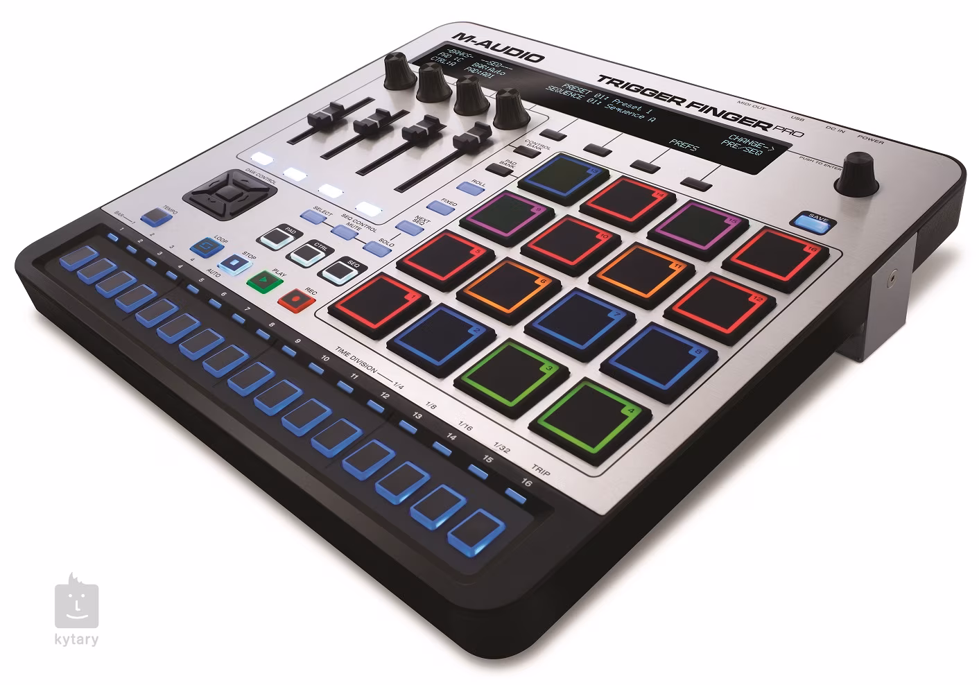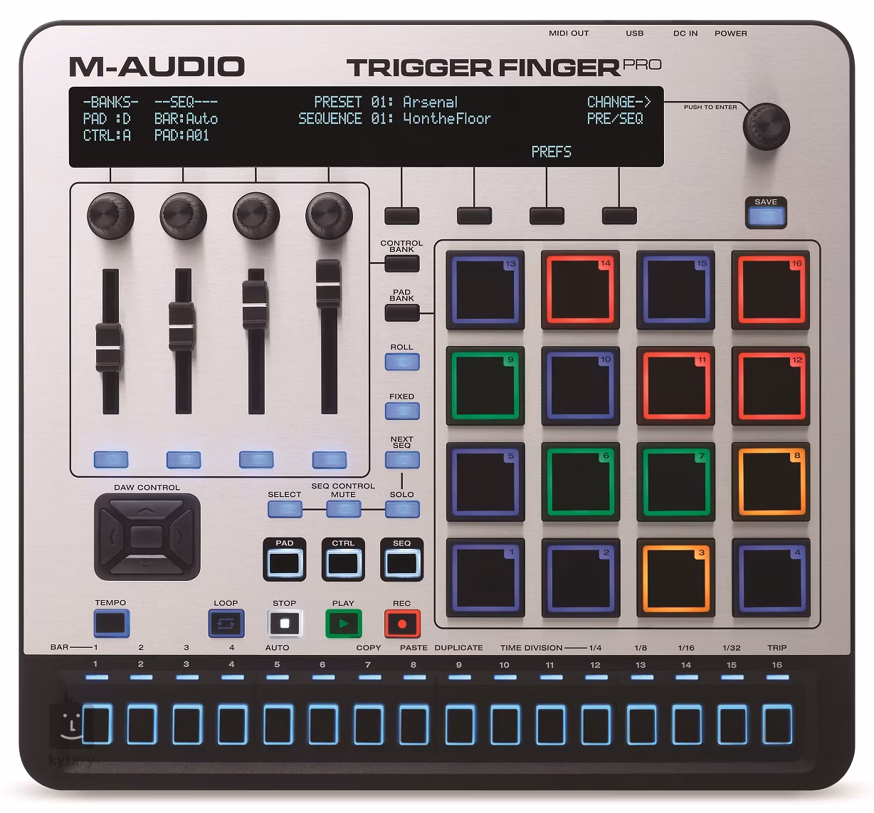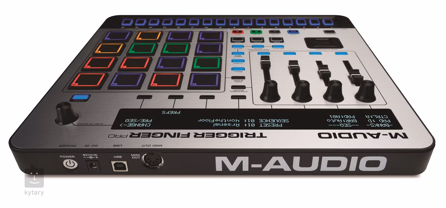 Trigger Finger Pro je „plně naložený“ pad ovladač se samostatným krokovým sekvencerem a nabízí jedinečný hudební výraz a softwarovou integraci. Hraj, remixuj a ovládej svůj software s řadou hardwarových ovládacích prvků: 16-ti ultra-citlivými, RGB podsvícenými pady, 4 přiřaditelnými knoby, 4 táhlovými ovládači, či 12-ti přiřaditelnými ovládacími prvky pro propojení s virtuálními nástroji, pluginy a DAW.