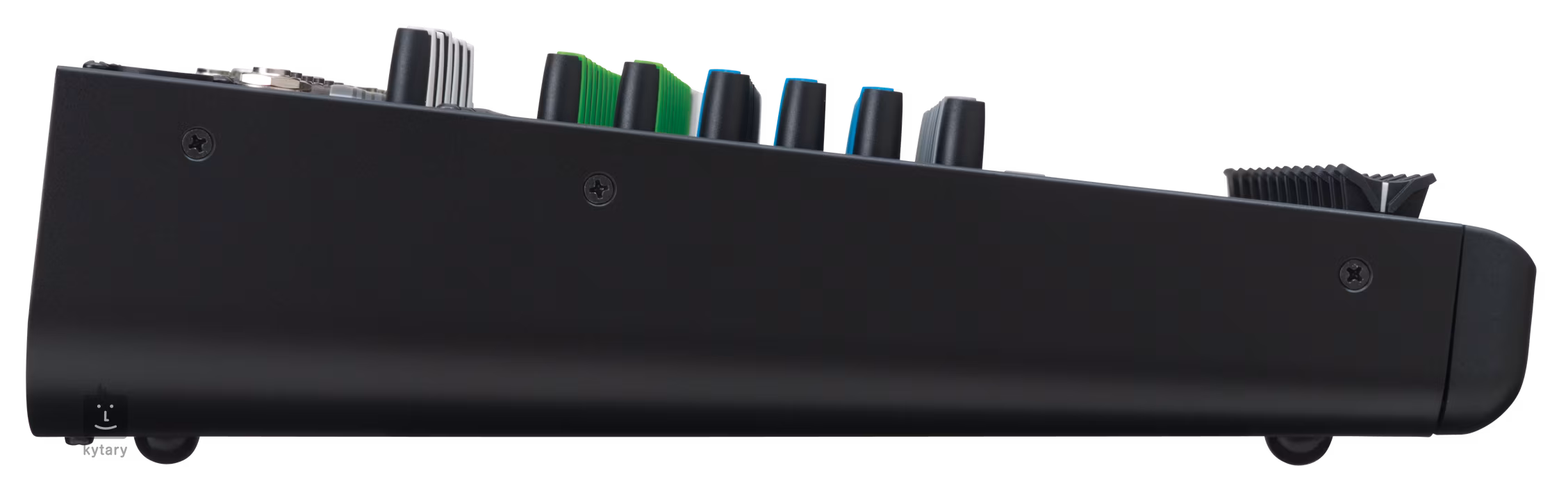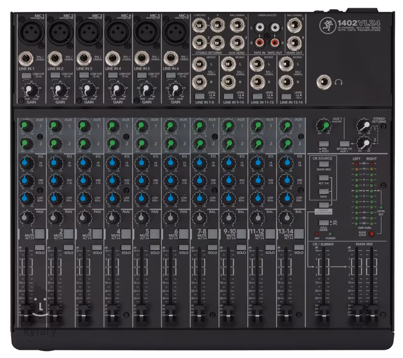 MACKIE 1402-VLZ4 Série mixážních pultů VLZ4 je řadou, která vznikla na základě mnohaletých zkušeností inženýrů Mackie. Že se vydali správnou cestou potvrzuje i fakt, že jde o jednu z nejprodávanějších sérií mixpultů na celém světě. Mezi charakteristiky VLZ4 jistě patří velký headroom, maximální eliminace nežádoucích šumů, moderní architektura sběrnice a opravdu přesný přenos signálu. Přičtěte spolehlivý ekvalizér, vysoce kvalitní předzesilovače a mechanicky odolnou konstrukci, a máte před sebou opravdu skvělý mixpult… Konkrétně 1402-VLZ4 je kompaktní 14kanálový mixpult, který nabízí 14 linkových vstupů a 6 mikrofonních vstupů, kdy u mikrofonních jsou použity kvalitní předzesilovače Onyx, které můžete znát z nejvyšších řad Mackie. Ty nabízí až 60 dB rozsah gainu, díky čemuž je možné v dynamickém rozsahu dostat až na 128,5 dB. Zajišťují to nejvěrnější zesilení signálu na všech frekvencích a minimální úroveň zkreslení. Samozřejmě nabízí i phantomové napájení při použití kondenzátorových mikrofonů. U 1402-VLZ3 lze použít i nástrojové vstupy, díky kterým nebudete potřebovat žádné DI boxy. Všechny kanály nabízí kromě ovladačů Gain a Level i 3 pásmový ekvalizér, který pracuje v pásmech 80 Hz, 2,5 kHz a 12 kHz, s Lo-Cut filtrem na 75 Hz. Též jsou zde ovladače Aux Send, Pre Fader Solo a Pan. Mixpult samozřejmě obsahuje i Control Room / Submix Main Mix ovladače. Do výbavy patří i ovladač Tape Level, který ovládá úroveň signálu přijatého přes stereo RCA Tape Input, vedle kterého naleznete i Tape Output. Samozřejmostí je sluchátkový výstup s vlastním ovladačem hlasitosti, Stereo Return, Control Room Output a ALT Output. Pro monitoring výstupního signálu je použit signalizátor z LED diod. Šasi mixpultu je postaveno tak, aby odolalo jakékoli zátěži. Potenciometry jsou zatěsněné, aby se do nich nemohla dostat žádná špína či prach.