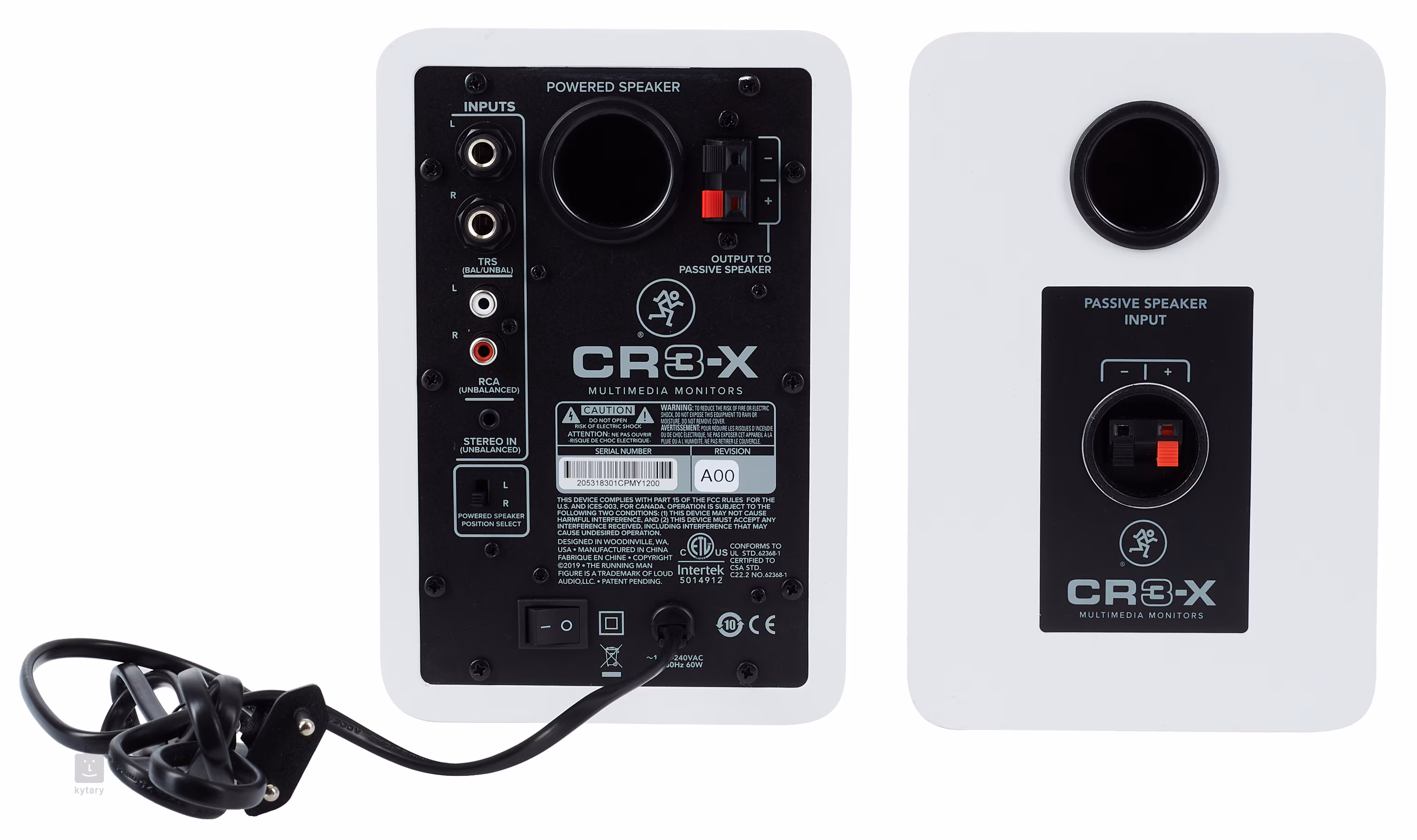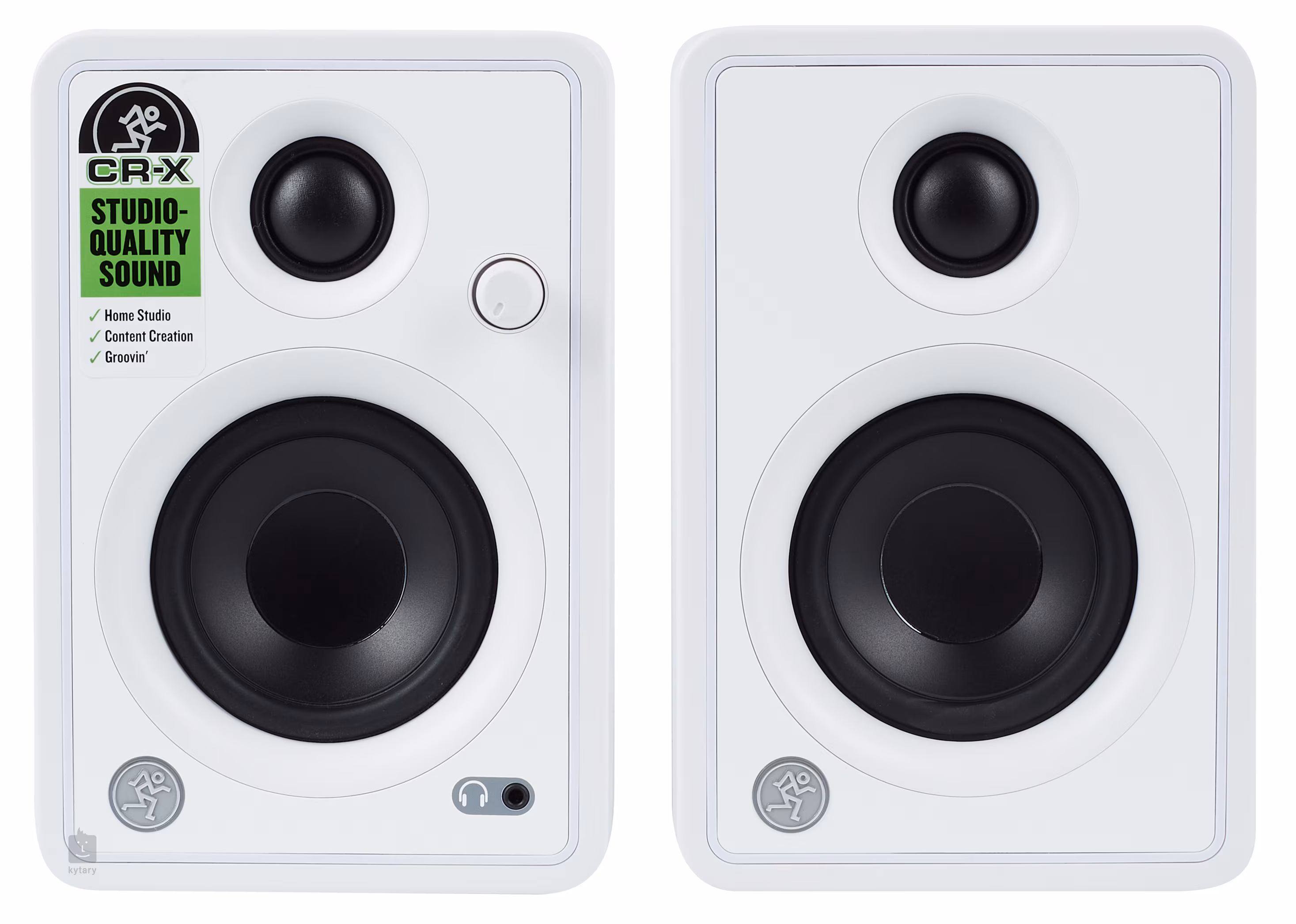 Studiové monitory Mackie CR3-X jsou osazeny 3" wooferem a 0,75" měničem vysokých frekvencí, které spolu se zesilovačem třídy D vytváří nabízí maximální výkon až 50 W. Jeden z monitorů disponuje sluchátkovým výstupem na přední straně a také snadno přístupným ovladačem pro úpravu hlasitosti. Zadní panel potom nabízí flexibilní konektivitu v podobě dvou párů symetrických konektorů Jack 6,3 mm, či nesymetrickou alternativu s RCA konektery, nechybí zde ani stereo vstup jack 3,5 mm např. pro hudební přehrávač. Poměrně sofistikovaným a originálním řešením je přepínač L/R, který určuje, na které straně bude chtít umístit monitor s ovladačem hlasitosti, což se hodí zejména pro leváky a v případech, kdy používate myš a zároveň potřebujete pracovat s hlasitostí monitorů. Součástí balení je RCA kabel, audio kabel jack 3,5 mm - jack 3,5 mm a kabely na propojení monitorů.