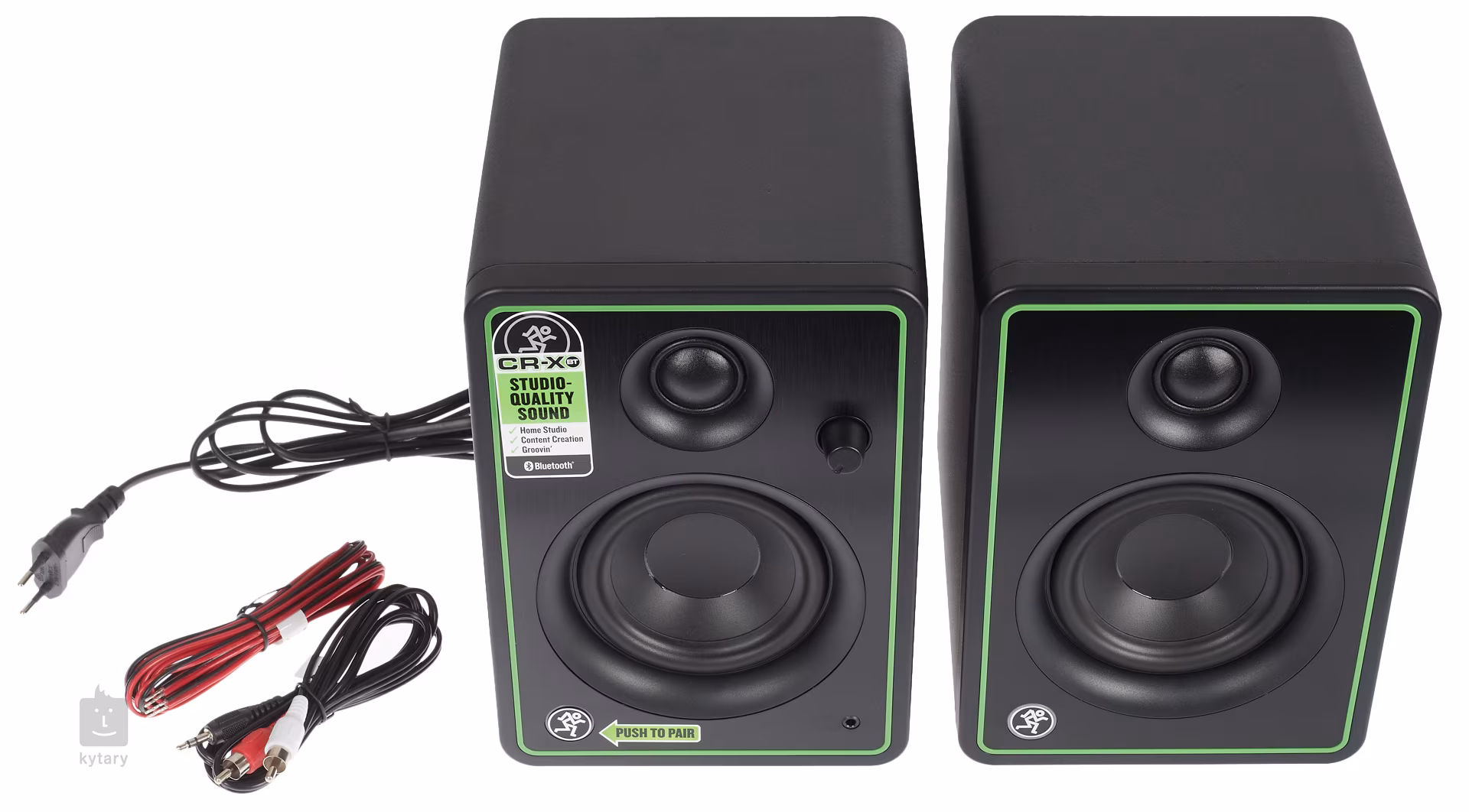 Studiové monitory Mackie CR4-XBT jsou osazeny 4" wooferem a 0,75" měničem vysokých frekvencí, které spolu se zesilovačem třídy D vytváří nabízí maximální výkon až 50 W. Jeden z monitorů disponuje sluchátkovým výstupem na přední straně a také snadno přístupným ovladačem pro úpravu hlasitosti. Zadní panel potom nabízí flexibilní konektivitu v podobě dvou párů symetrických konektorů Jack 6,3 mm, či nesymetrickou alternativu s RCA konektery, nechybí zde ani stereo vstup jack 3,5 mm např. pro hudební přehrávač. Monitory jsou vybaveny také možností Bluetooth připojení, takže můžete streamovat vaší oblíbenou hudbu bez jediného kabelu. Poměrně sofistikovaným a originálním řešením je přepínač L/R, který určuje, na které straně bude chtít umístit monitor s ovladačem hlasitosti, což se hodí zejména pro leváky a v případech, kdy používate myš a zároveň potřebujete pracovat s hlasitostí monitorů. Součástí balení je RCA kabel, audio kabel jack 3,5 mm - jack 3,5 mm a kabely na propojení monitorů.