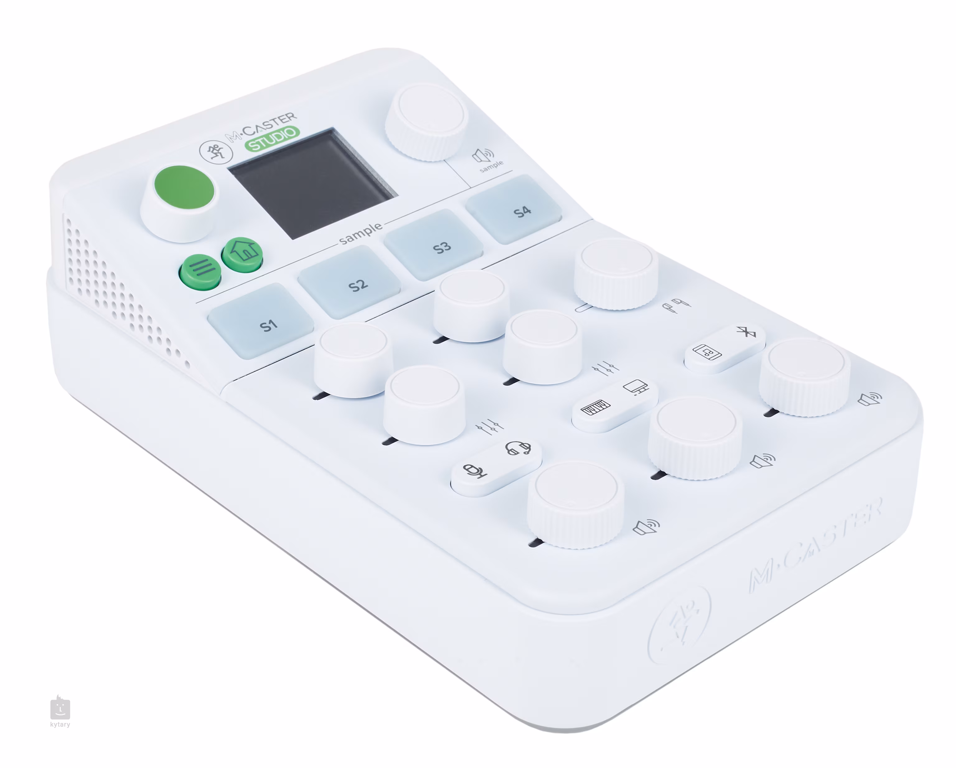 Kompaktní zvukové rozhraní M•Caster Studio White je vhodné pro tvůrce podcastů, gamery nebo živé streamy a jiný audiovizuální materiál. Nabízí konektivitu přes USB, kompatibilitu s Bluetooth 5.0, zabudovaný sampler (4 pad), 21 StreamFX presetů, 11 ContourFX presetů, mikrofonní vstup s fantomovým napájením, tři 3,5 mm TRS jack vstupy (Aux, Headset, Keyboard), dva výstupy (sluchátkový, reproduktorový) a nastavitelné RGB LED. K napájení slouží přibalený 12V 2A DC adaptér.