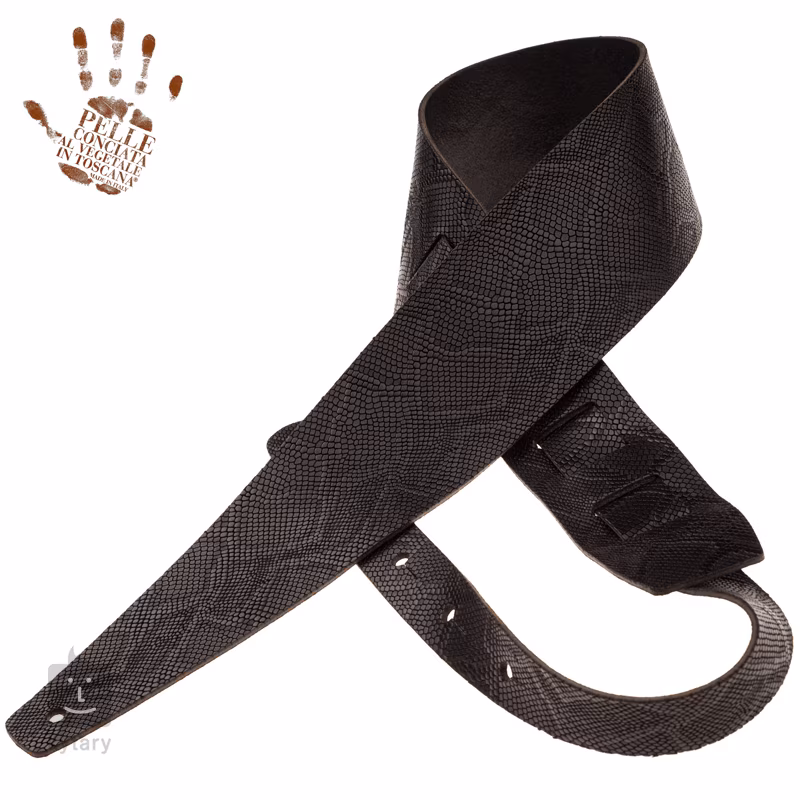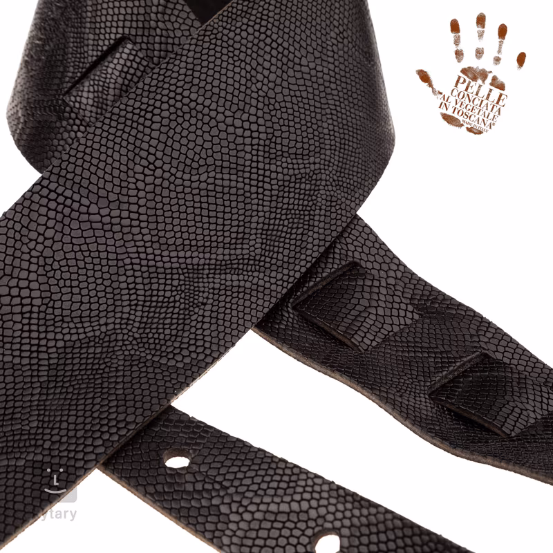 Zároveň jsou vybaveny klasickým ''dírkovým'' systémem nastavení délky bez jakýchkoliv spon a kovových částí, které by mohly ohrozit lak vašeho cenného nástroje. Dírek najdete po celé délce osm, což umožňuje dokonalé přizpůsobení potřebám každého hudebníka. Popruh je vyroben ručně v Itálii a zdobený je vzorem hadí kůže.