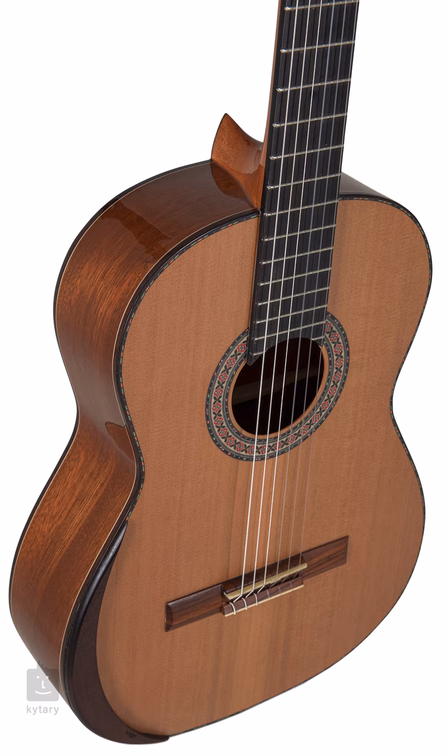 MAGISTRAL Series all solid je klasická kytara v plné 4/4 velikosti. Přední deska nástroje je zhotovena z červeného cedru, zadní deska a luby jsou vyrobeny z mahagonu. Kytara dále nabízí cedrový krk s ebenovou výztuhou, ebenový hmatník, palisandrovou kobylku se dvanácti otvory, nultý pražec z kosti, pozlacené mechaniky s lyrou a černými kolíčky, praktickou opěrku ruky pro větší herní komfort a tradiční prvky v podobě dřevěné výložky korpusu a dekorativní rozety.