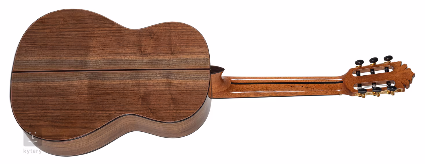 MAGISTRAL Series E Walnut all solid je klasická kytara v plné 4/4 velikosti. Přední deska nástroje je zhotovena ze smrku, zadní deska a luby jsou vyrobeny z ořechu. Kytara dále nabízí cedrový krk s ebenovou výztuhou, ebenový hmatník, palisandrovou kobylku se dvanácti otvory, nultý pražec z kosti, pozlacené mechaniky s lyrou a černými kolíčky, praktickou opěrku ruky pro větší herní komfort a tradiční prvky v podobě dřevěné výložky korpusu a dekorativní rozety.