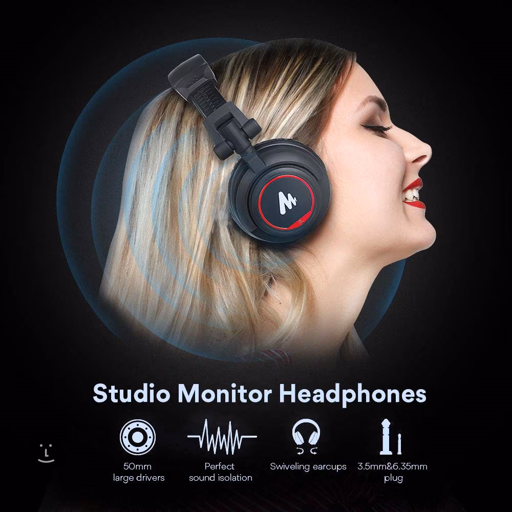 Profesionální studiová sluchátka od Maono vhodná pro domácí nahrávací studia, běžný poslech vaši oblíbené hudby, nebo gamery, kteří si chtějí užít hraní her se vším všudy. Měkké náušníky a nastavitelný hlavový mostek vám zajistí maximální komfort pro několikahodinové nošení. Uvnitř odolné konstrukce se nachází 50mm neodymové drivery přinášející krystalicky čistý zvuk bez zkreslení. Součástí balení je potom 3m zakroucený kabel a redukce na Jack 6,3 mm.