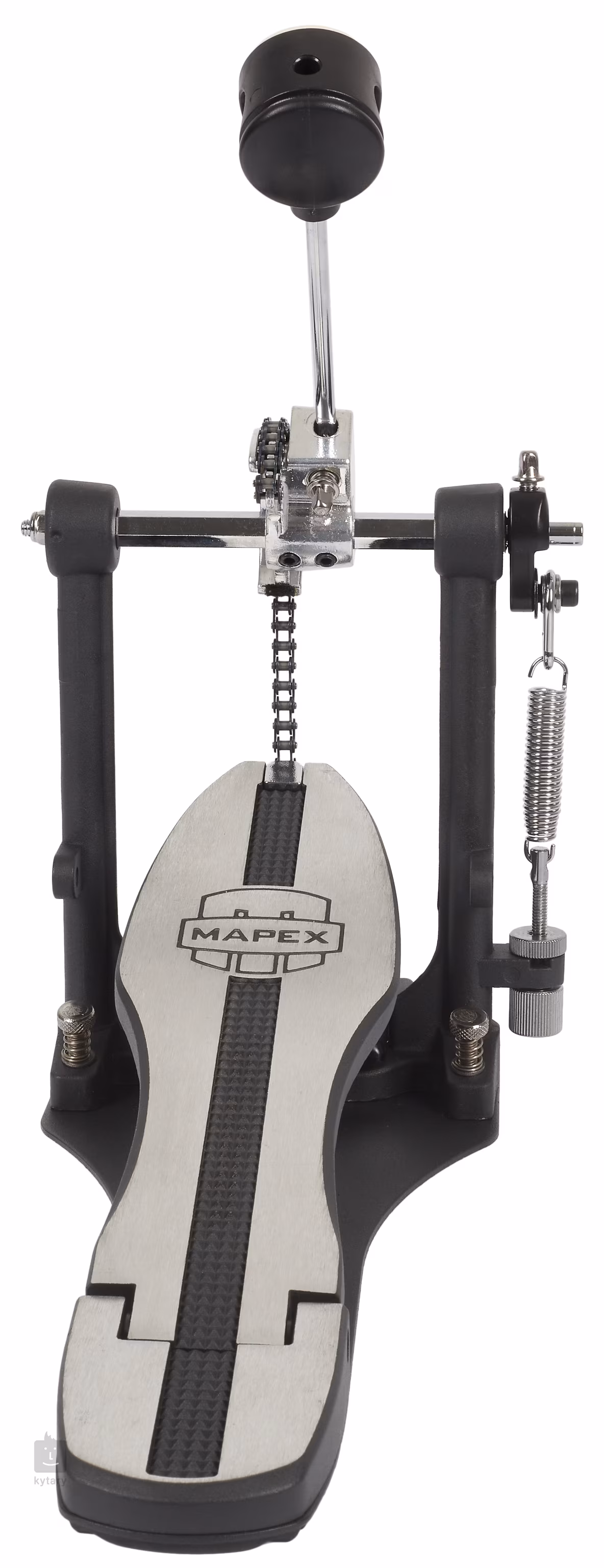 Mapex P400 je kvalitní pedál k basovému bubnu, který nabízí inovativní design s krátkou patou. Pro větší variabilitu je opatřen oboustranným beatrem s filcovým i plastovým povrchem, takže z něj dostanete vše na škále od klasických zvuků až po pořádné hromobití.
