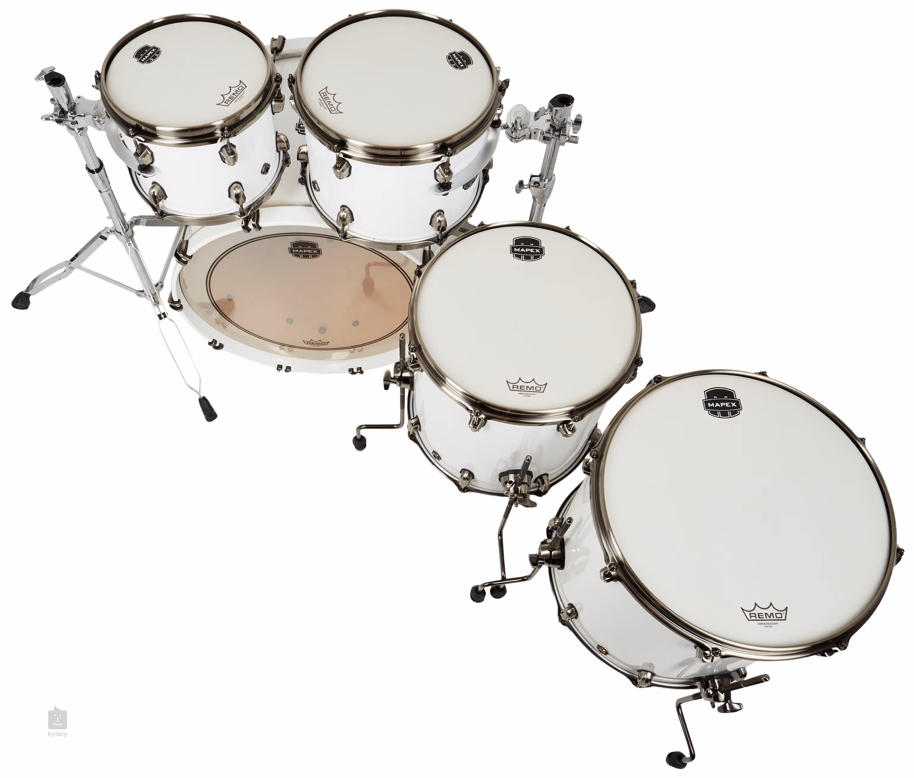 Sada obsahuje velký buben 22x18 bez příruby (8,9 mm, 10 šroubů na straně), tom 10x8 (7,5 mm, 6 šroubů na straně), tom 12x9 (8,2 mm, 6 šroubů na straně), floor tomy 14x14 a 16x16 (8,2 mm, 8 šroubů na straně), 2x MSSTC držák tomu, ráfky Sonic Saver 2,3mm a blány REMO (made in USA).