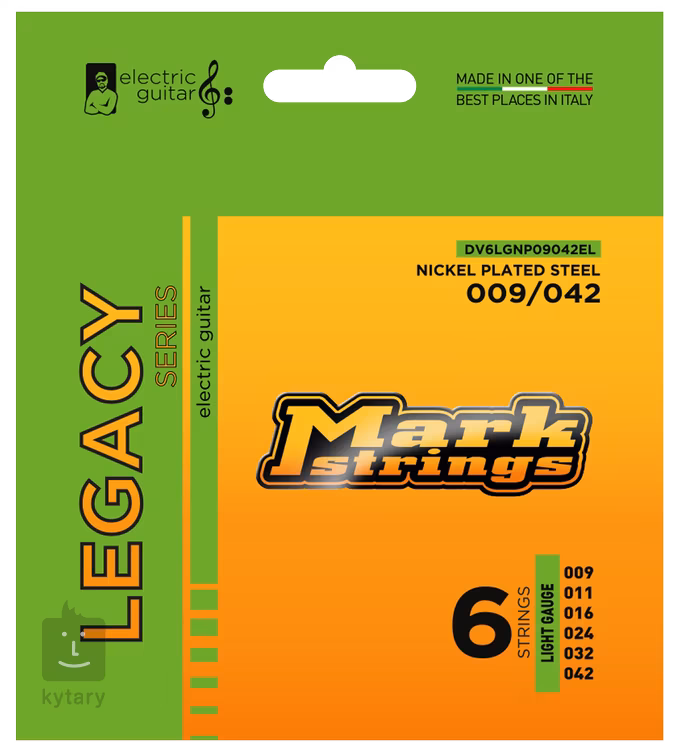 Struny pro elektrické kytary MarkStrings ze série Legacy jsou vyrobeny z kvalitní poniklované oceli vinuté na šestihranném ocelovém jádru s vysokým obsahem uhlíku. Jejich zvuk je díky zvoleným materiálům vřelý, frekvenčně vyvážený a bohatý, vhodný pro téměř jakýkoliv hudební styl. Struny jsou vysoce odolné proti praskání a perfektně drží ladění. Vyráběny jsou s důrazem na tradiční řemeslnou výrobu a precizní zpracování v továrně v italském Abruzzu, které je historickou kolébkou výroby strun.
