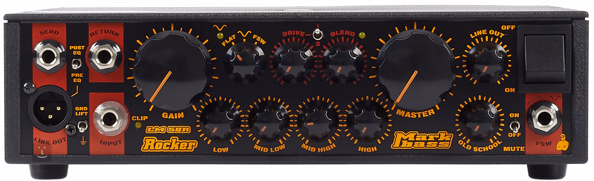 LITTLE MARK ROCKER 58R od Markbass je tranzistorový baskytarový zesilovač navržený speciálně pro rockové basisty, kteří hledají agresivnější zvuk s možností drive efektu. Zachovává všestrannost klasické série Little Mark, ale přidává možnost vlastního nastavení zkreslení, které lze plynule míchat s čistým signálem pomocí ovladače BLEND. Díky tomu poskytuje široké spektrum tónů od jemného overdrivu až po výrazné zkreslení, které se snadno prosadí v mixu.