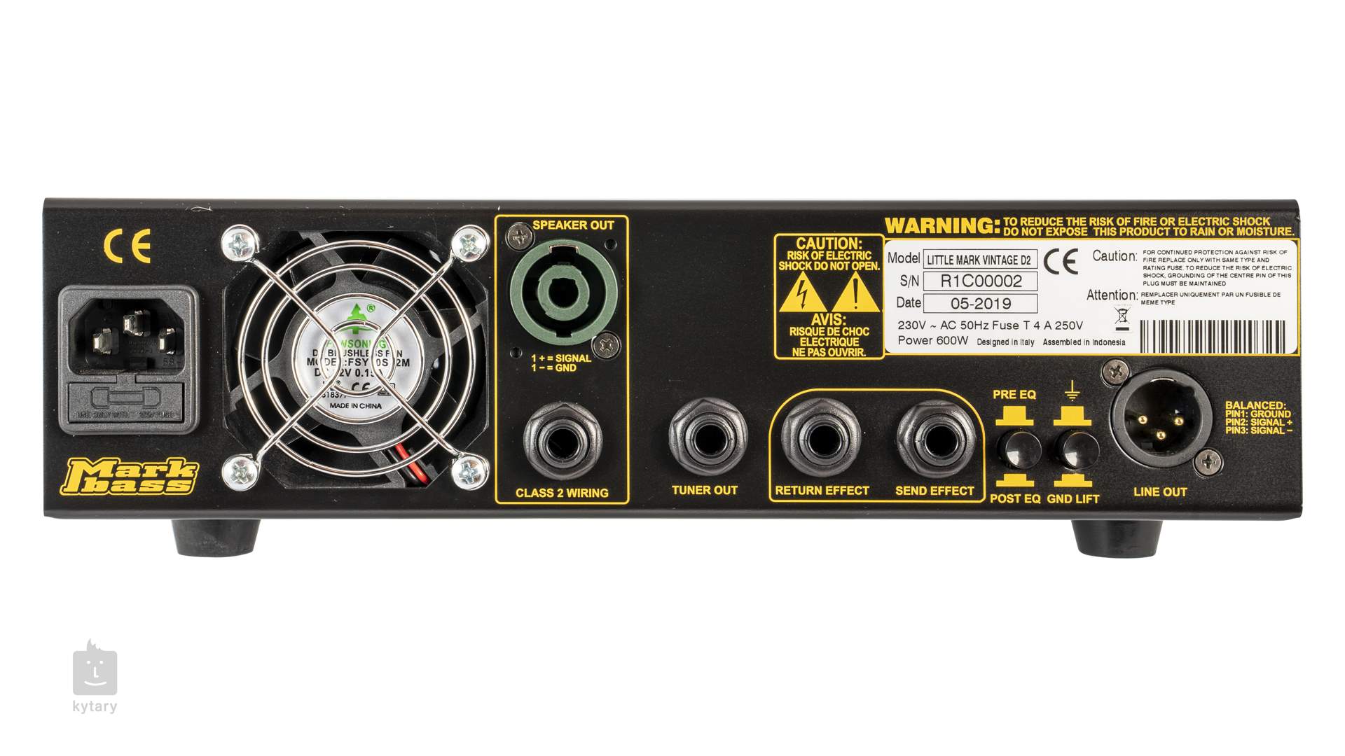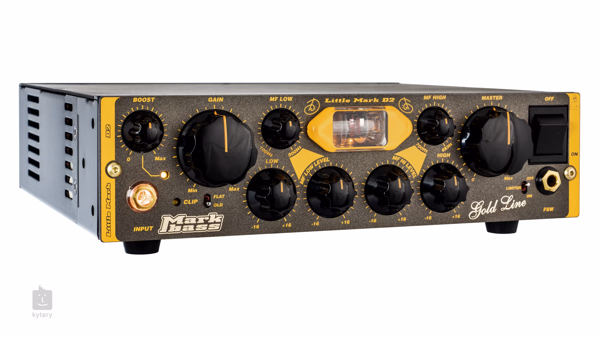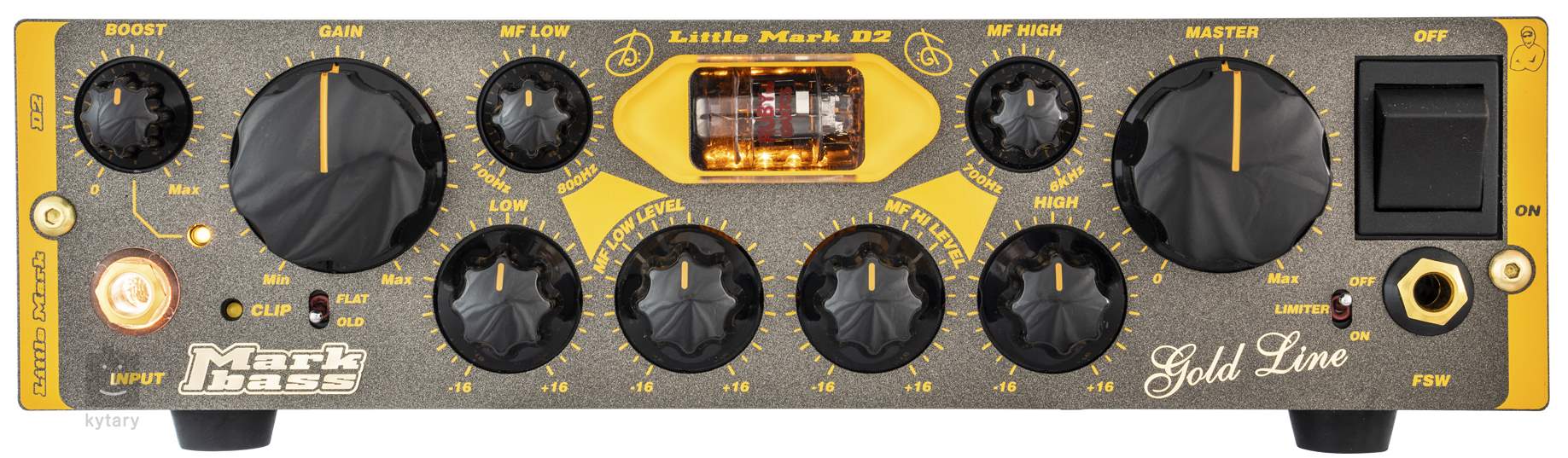 Little Mark Vintage D2 nabízí jiné vlastnosti než Little Mark Vintage. Byl vyvinut proto, aby uspokojil jiné požadavky baskytaristů, jako je například semi-parametrický ekvalizér, který nabízí širší škálu zvukových možností, Boost s nastavením hlasitosti a také vypínač pro Limiter. Vedle toho samozřejmě nabízí vřelý lampový preamp, symetrický výstup DI s opravdovým transformátorem a pozlacené obvody s výběrovými komponenty, stejně jako jeho Vintage bratr. I tenhle zesilovač patří do řady Gold Series, která se může chlubit špičkovou kvalitou a jde na první pohled poznat díky úchvatnému designu, který značí novou éru Markbass!