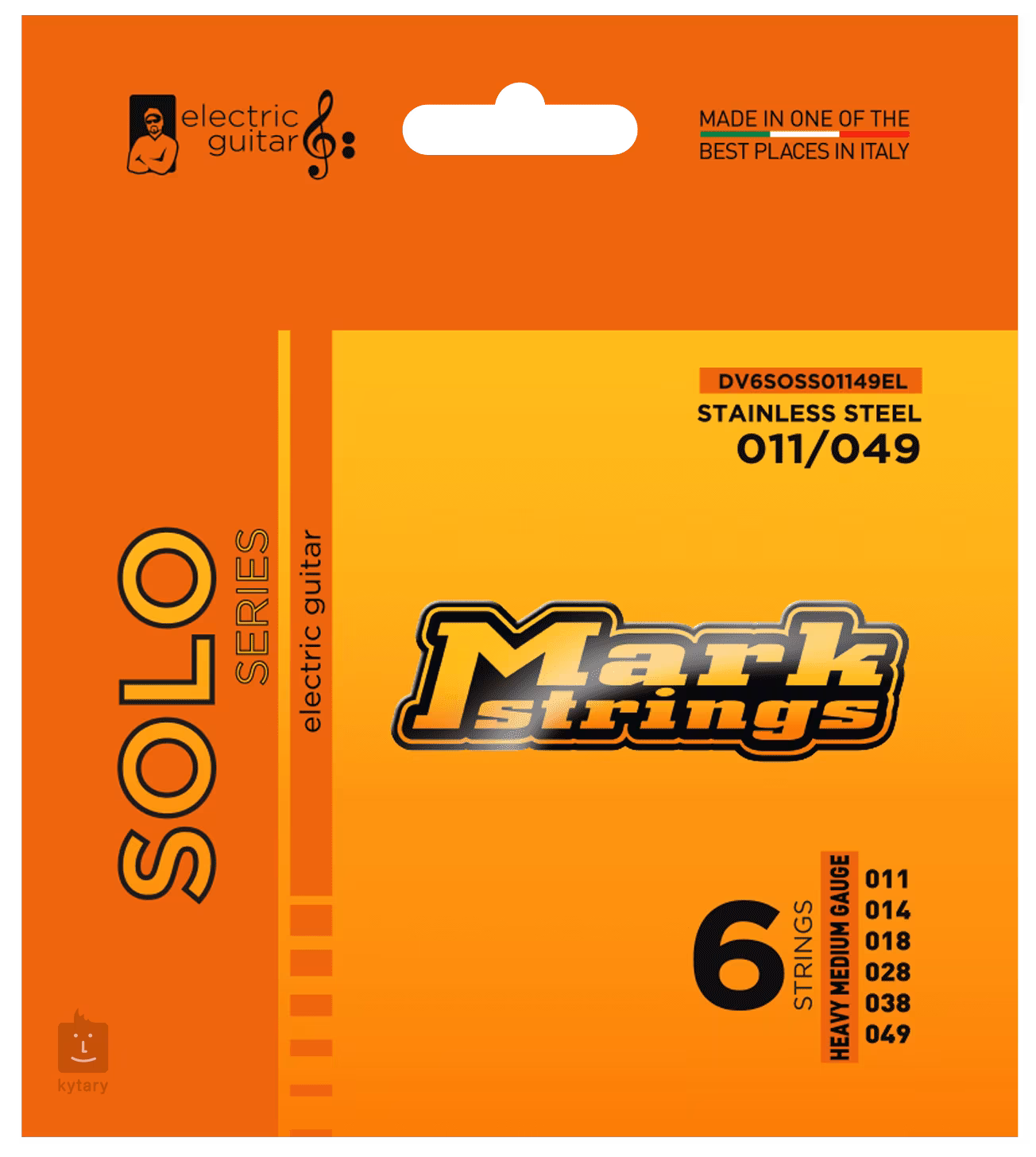 Struny pro elektrické kytary MarkStrings ze série Solo jsou vyrobeny z kvalitní nerezové oceli vinuté na šestihranném ocelovém jádru s vysokým obsahem uhlíku. Jejich zvuk je díky zvoleným materiálům jasný, zvonivý a bohatý, ideální pro hráče, kteří preferují tón s akcentovanými výškami. Struny také perfektně drží ladění a jsou přirozeně odolné proti korozi. Vyráběny jsou s důrazem na tradiční řemeslnou výrobu a precizní zpracování v továrně v italském Abruzzu, které je historickou kolébkou výroby strun.